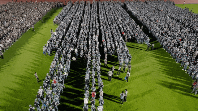 在体育场有序集结
