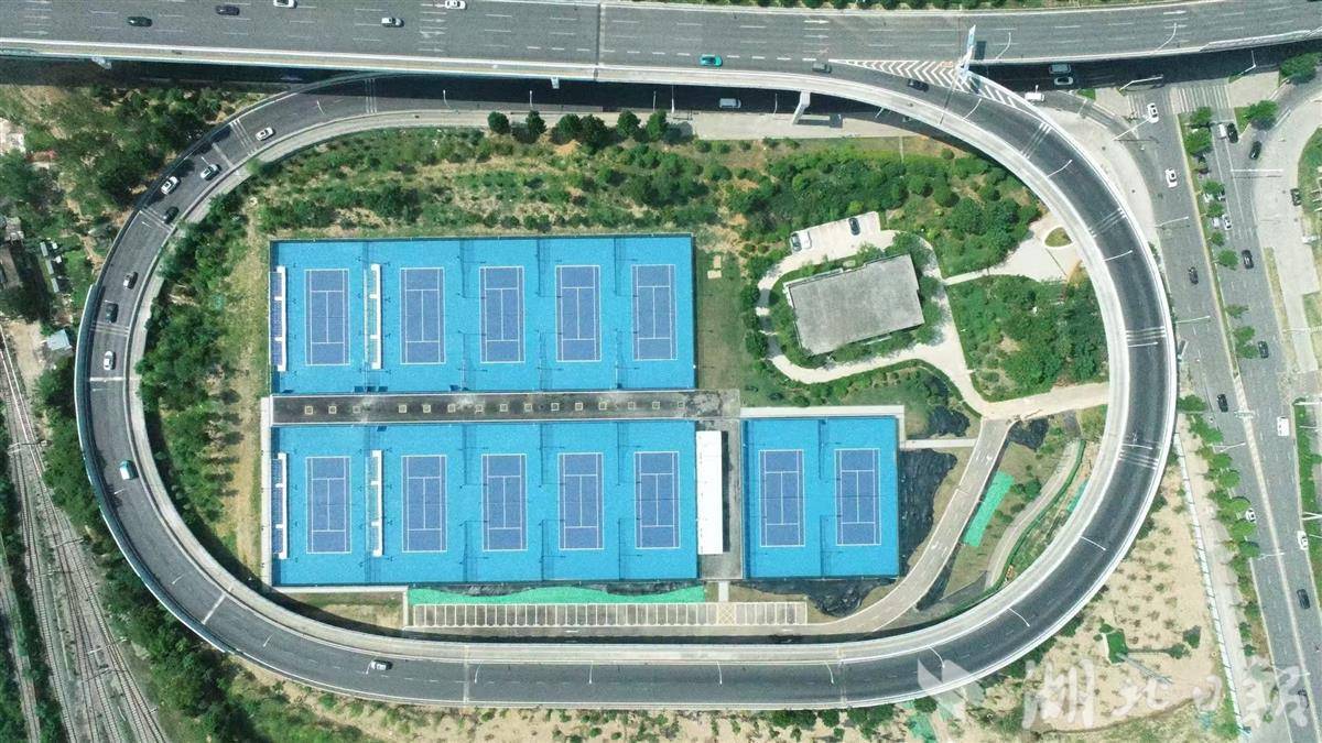 马路对面,12片崭新的网球场静卧于椭圆形匝道的环抱中,静待第一批网球爱好者的到来。