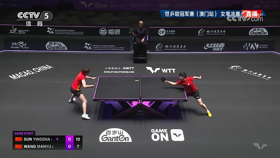 WTT澳门冠军赛女单决赛,孙颖莎和王曼昱上演高质量对决。双方大比分一度战至3比3平,最终,在决胜局中,孙颖莎11-6战胜王曼昱,夺得冠军!