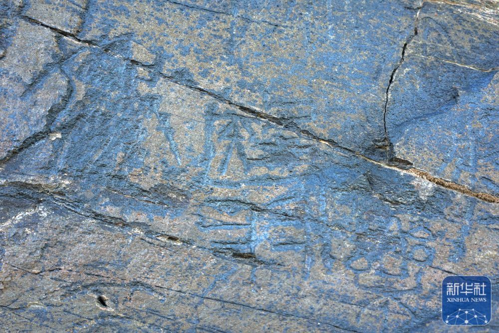 ↑ 7月25日拍摄的“尕日塘秦刻石”。新华社记者 杜笑微 摄