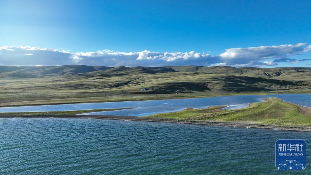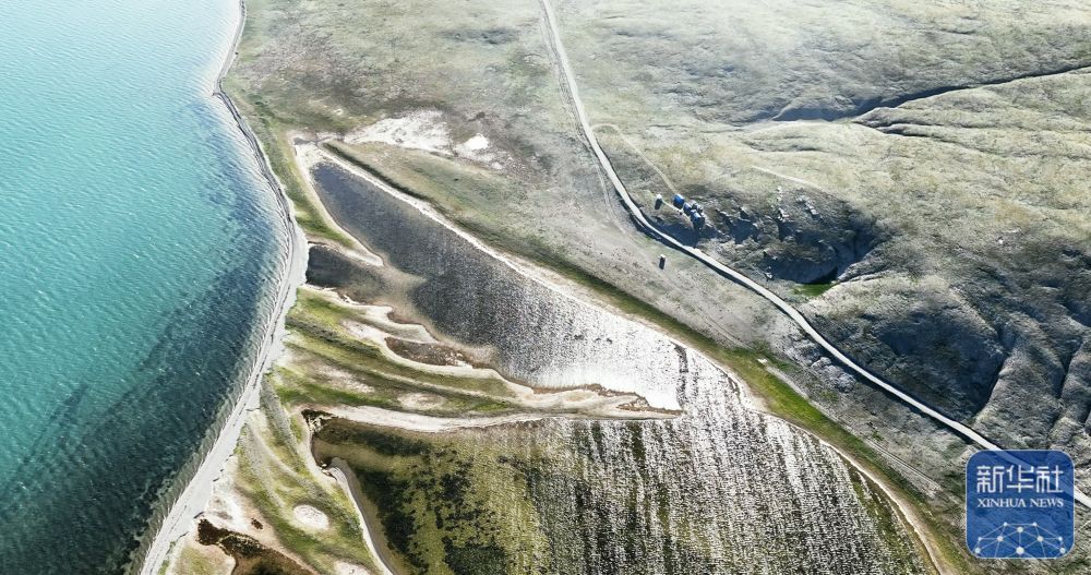 ↑ 7月25日拍摄的“尕日塘秦刻石”所在地青海省果洛藏族自治州玛多县扎陵湖北岸(无人机照片)。新华社记者 杜笑微 摄