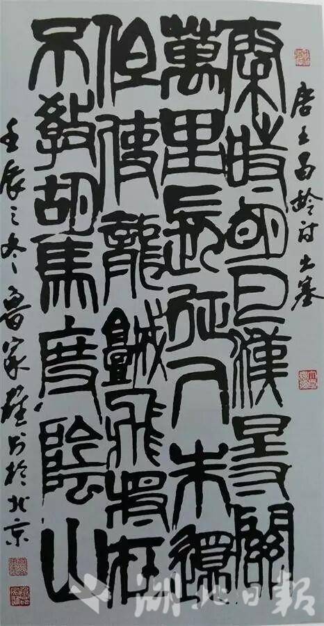 2021年,为献礼建党百年,鲁家雄曾历时一年完成大型篆刻作品《百寿图》,该作品以101方不同印章组成,每方篆刻的“寿”字阴阳结合,形态各异,展现了深厚的功力和对传统文化的传承。