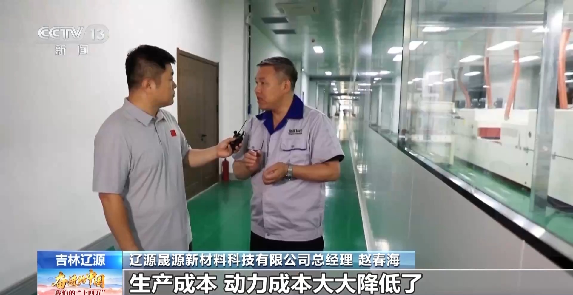 辽源晟源新材料科技有限公司总经理 赵春海:现在我们已经接入绿电了,占比总用电量20%左右,比例还会不断提高,生产成本、动力成本大大降低了。