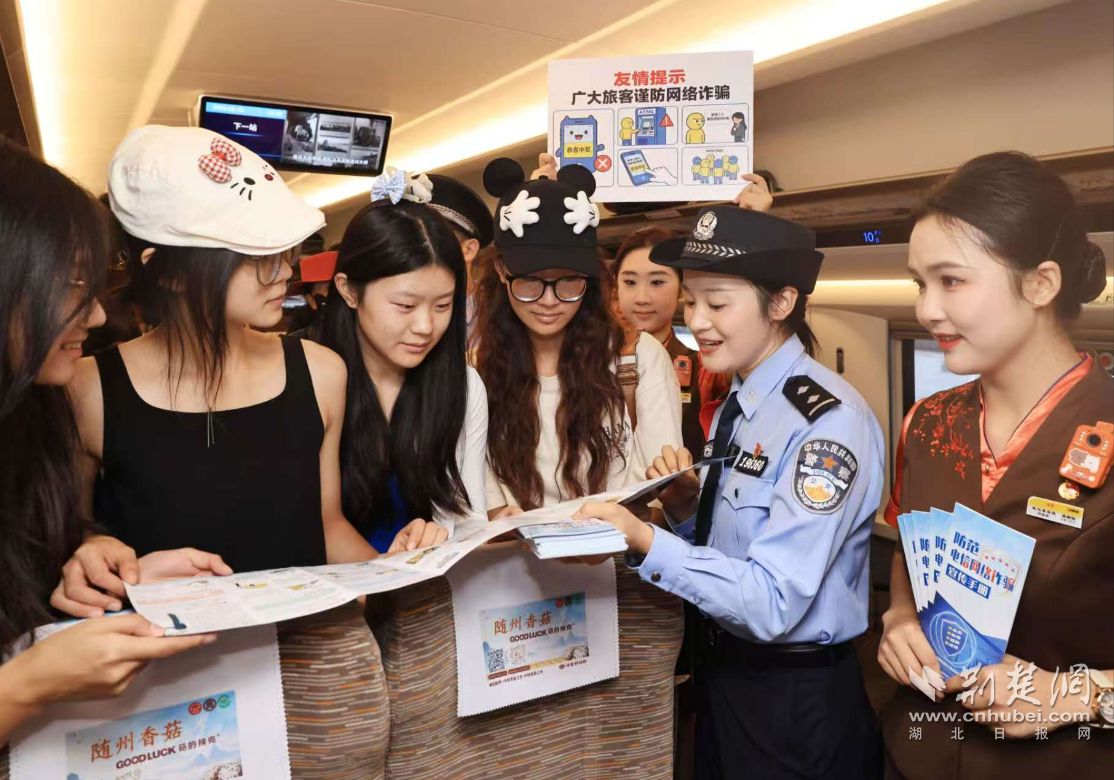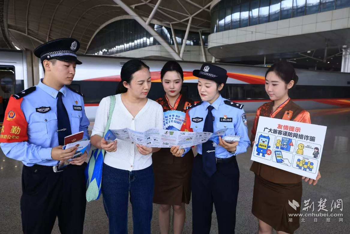 在武汉站候车大厅,民警通过发放宣传册、现场讲解、互动问答等方式,向过往旅客普及网络安全知识,提醒大家警惕电信网络诈骗,保护好个人信息。