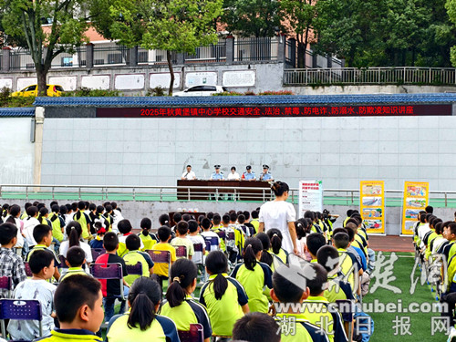 荆楚网(湖北日报网)讯(通讯员 徐肖 郭荞诚)金秋九月,校园里又响起了琅琅书声。与此同时,一年一度的“秋季开学法治教育课”活动也火热开启,一股清新的“法治教育风”悄然吹进湖北省襄阳市保康县黄堡镇中心学校运动场。9月15日,保康县公安局黄堡派出所联合禁毒大队、襄阳铁路公安处保康县站派出所民警及黄堡镇司法所工作人员走进黄堡镇中心学校,开展了以“法治进校园 学法促成长”为主题的法治安全教育讲座。