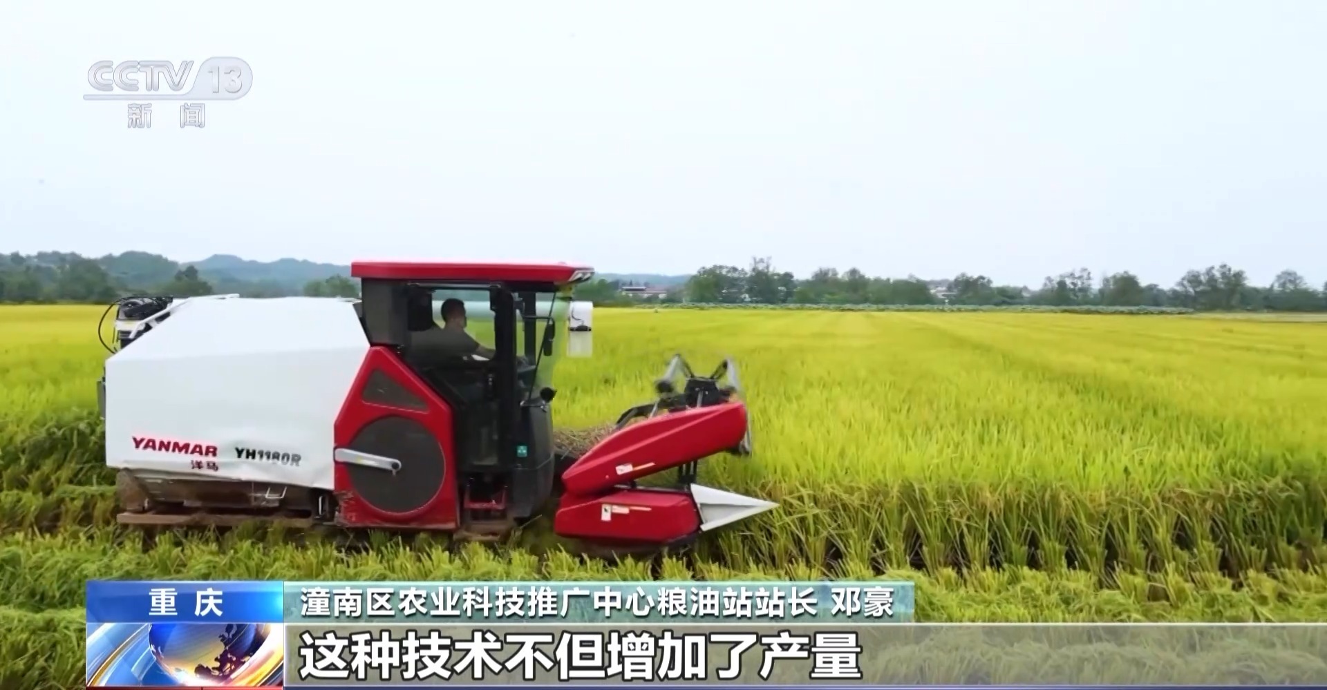 重庆市潼南区农业科技推广中心粮油站站长 邓豪:这个示范片采取的是水稻全程机械化的技术,这种技术不但增加了产量,而且降低了成本,平均每亩地节约成本350块钱左右。