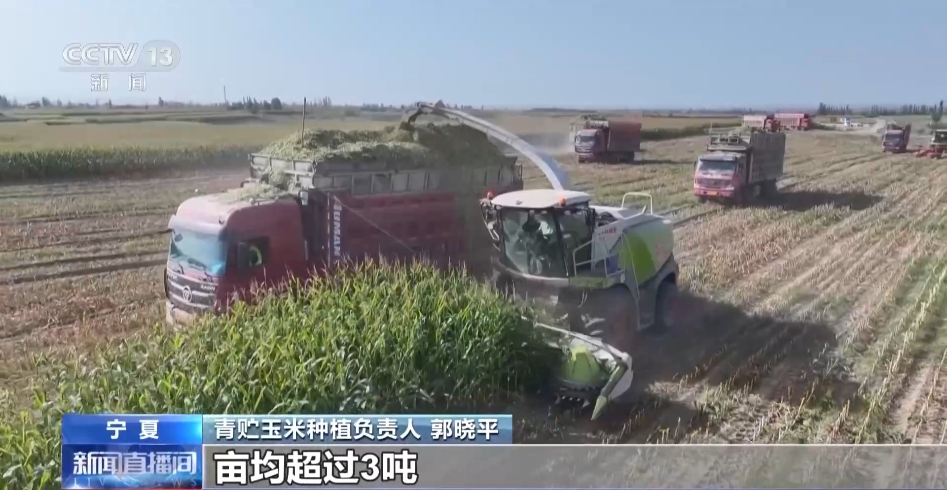 青贮玉米种植负责人 郭晓平:从目前的收割产量来看,亩均超过3吨。这3万亩土地所有的青贮玉米产量,够12000头奶牛全年的口粮。