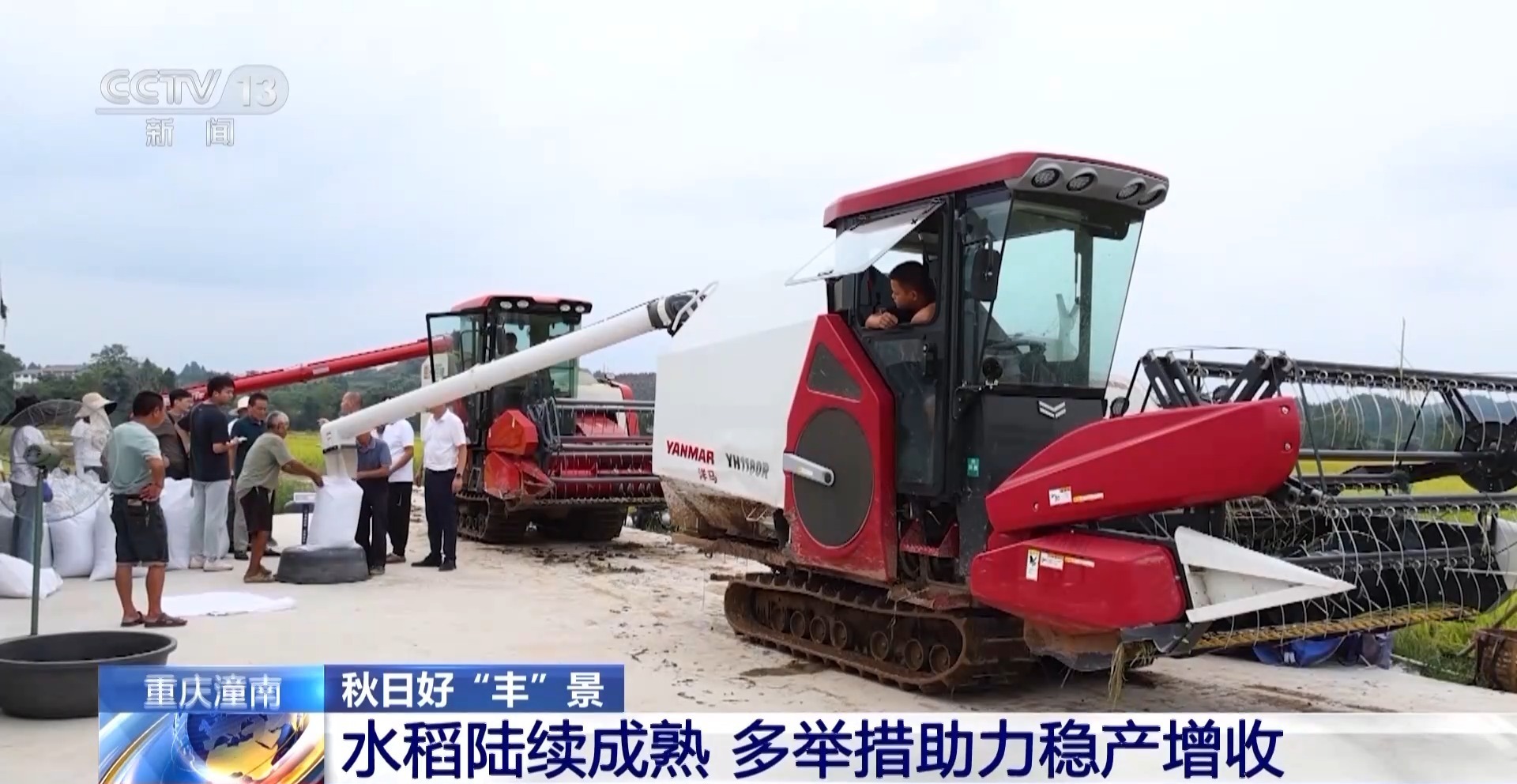 金秋时节,稻谷飘香。连日来,重庆潼南区的39万多亩水稻陆续成熟,农户们抢抓晴好天气,利用农业机械进行水稻收割,确保颗粒归仓。