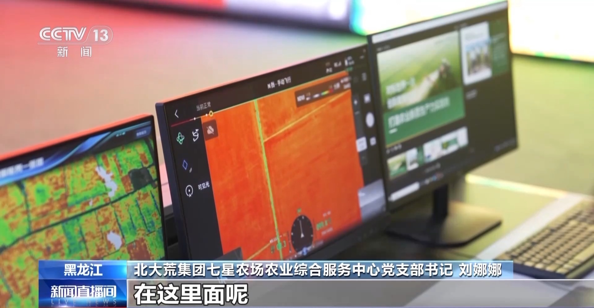 北大荒集团七星农场农业综合服务中心党支部书记 刘娜娜:多光谱无人机飞过之后,会将数据实时传到这个平台,平台进行精准分析,生成一张水稻的“成熟度地图”。