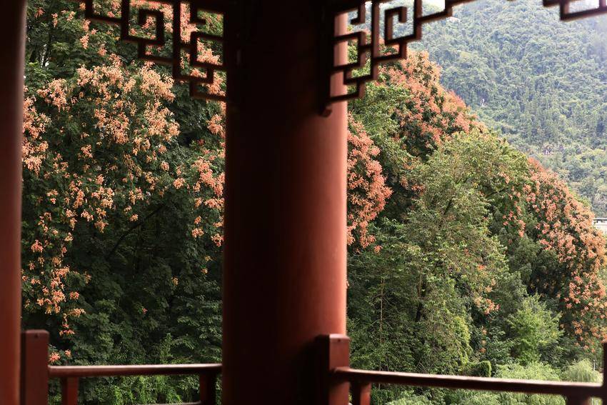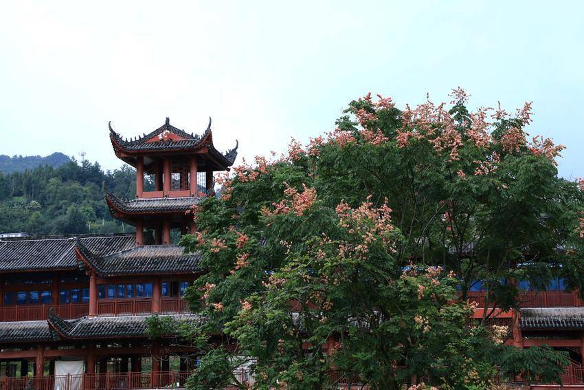 湖北日报客户端讯(通讯员 溇水涛声 郑红)溇水两岸,栾树缀满艳红的花朵,将秋天晕染成绚烂盛宴。亭台楼宇间,风铃叮咚,奏响清脆的秋之乐章。