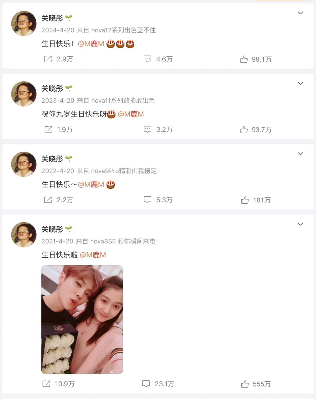 4月20日是演员、歌手鹿晗的35岁生日,截至4月21日,关晓彤尚未在社交平台发文为其庆生,引发网友关注。