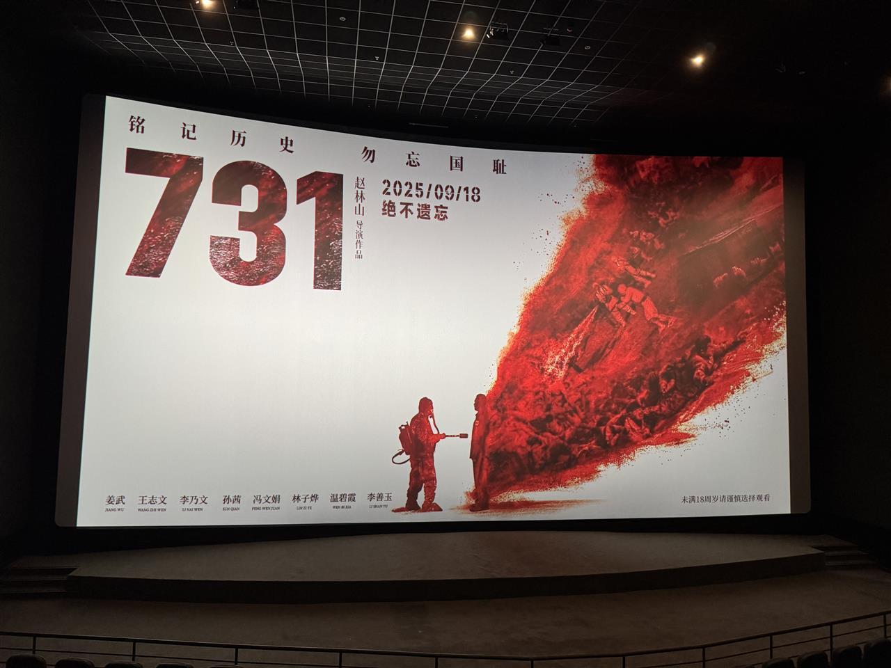 “影城里多数影厅都是排的《731》,从早上9点多到晚上11点都有排片。9月18日,除了不少散客前来观看外,还有不少团队购买团体票前来观影。”常德市武陵区紫缘路横店影城的店长陈女士告诉极目新闻记者,历史不容忘却。