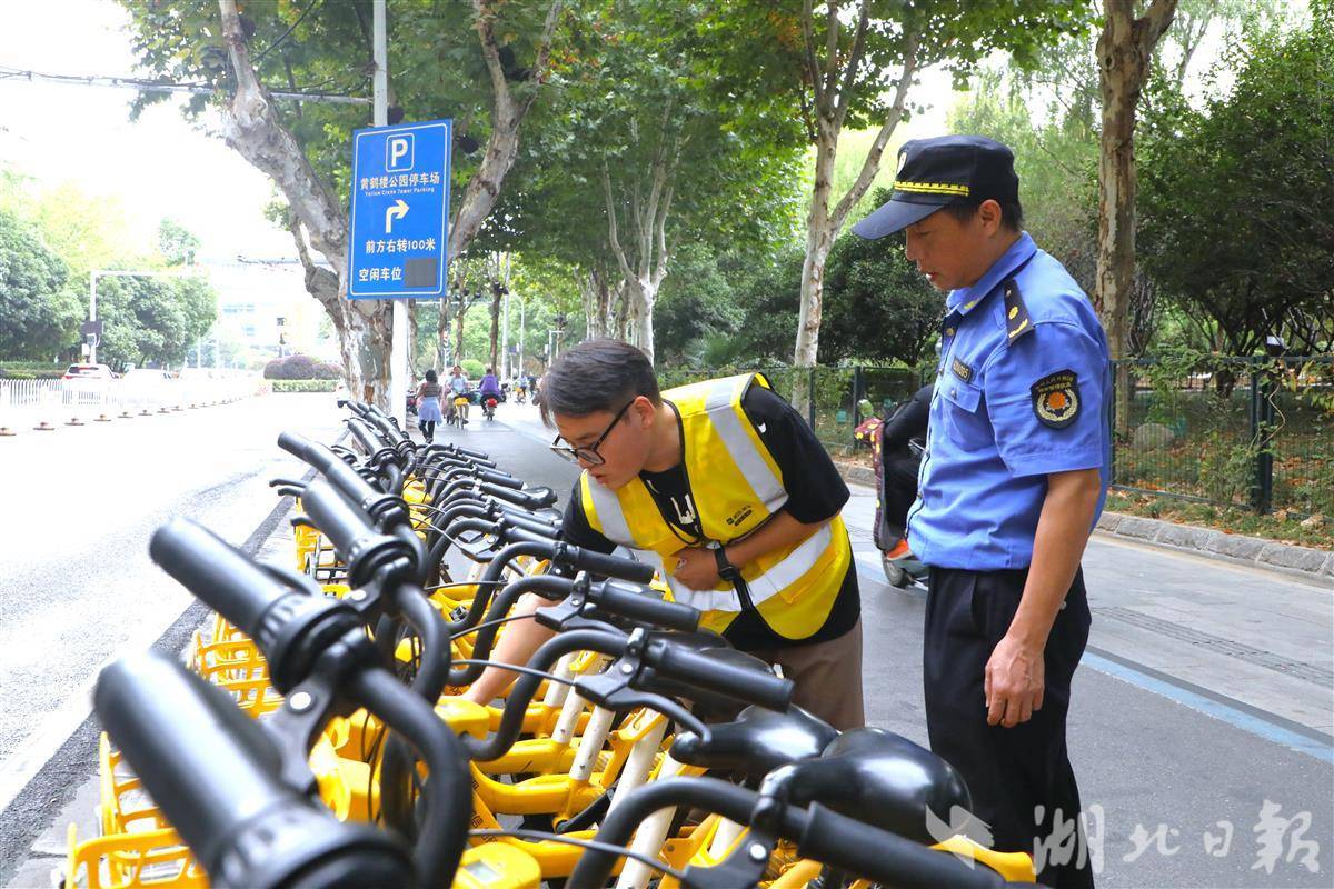 提升游客体验,不仅依赖于“微改造”,更需配套服务的同步升级。针对国庆期间可能出现的单车聚集现象,武昌区城管部门联合多家街道及单位,建立“电子围栏禁停+政企联动疏导+全天候清运”的组合措施,在武昌路、红楼路、体育街等路段设置了共享单车禁停区。同时协调哈啰、美团、青桔三家企业,组建“运维专班”,三家企业实现数据共享,无差别规整,提高清运效率。