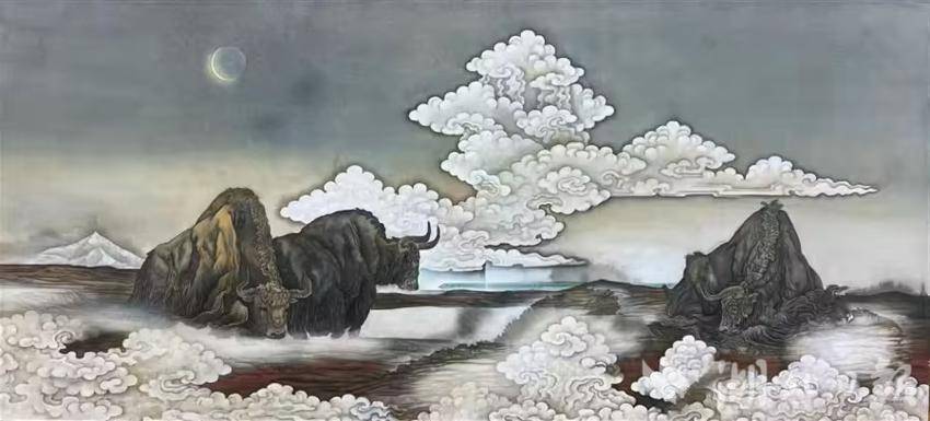 西藏自治区美术家协会副主席边巴的布面重彩《雪域春风》,以遥远天际中的牦牛为描绘对象,表现雪域高原特有的自然风貌和生态景观。四川大学艺术学院教授朱沙的布面油画《夔门夕照》,选择描绘长江代表性地标三峡夔门,着力表现夕照下三峡夔门的壮丽景色,营造了超越特定时空的氛围。