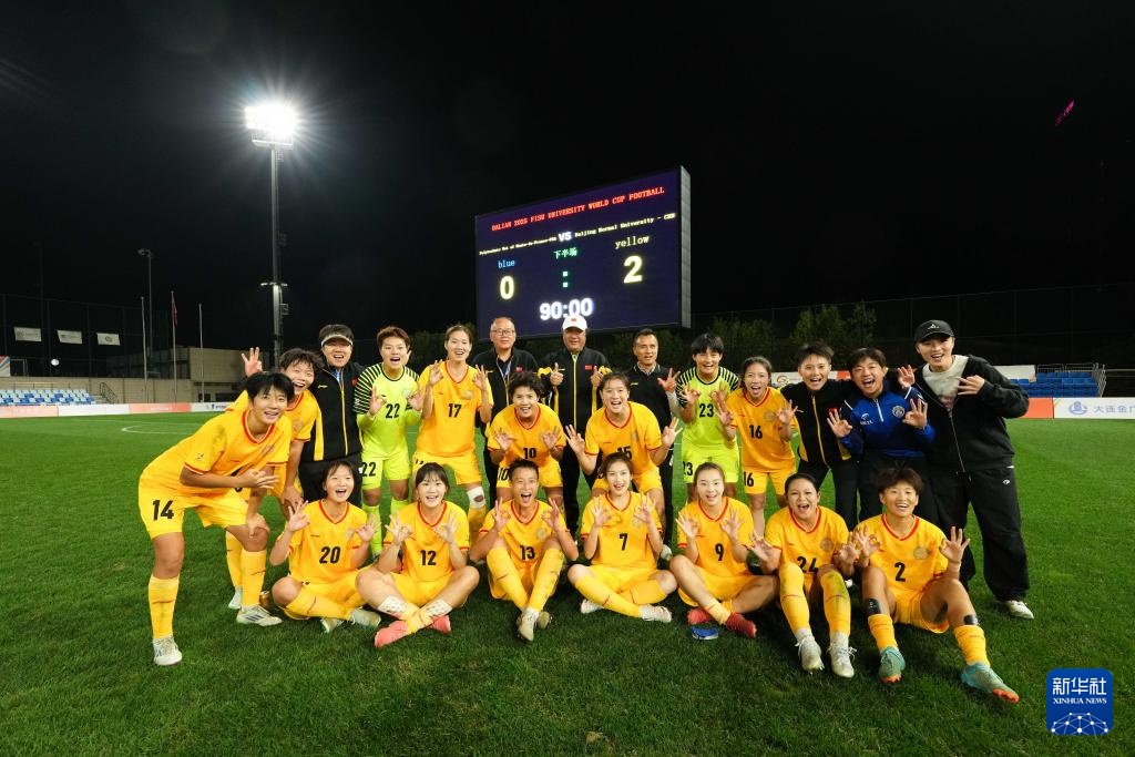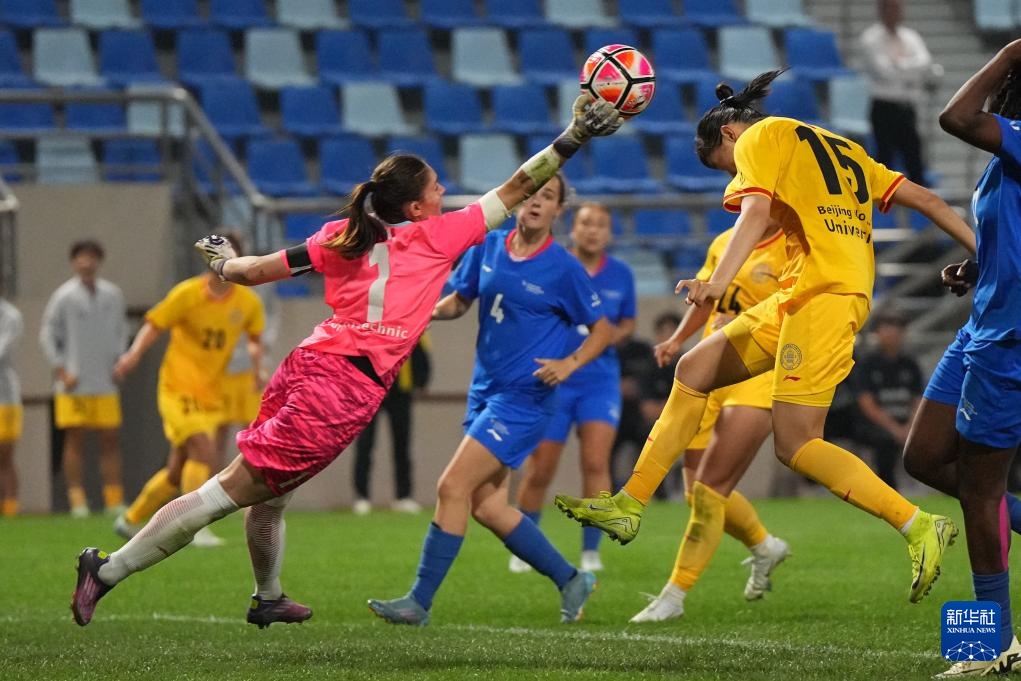 当日,在大连举行的2025年国际大体联足球世界杯女子B组小组赛中,北京师范大学女足2比0战胜法国上法兰西综合理工大学女足。