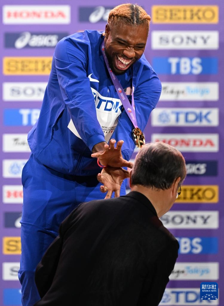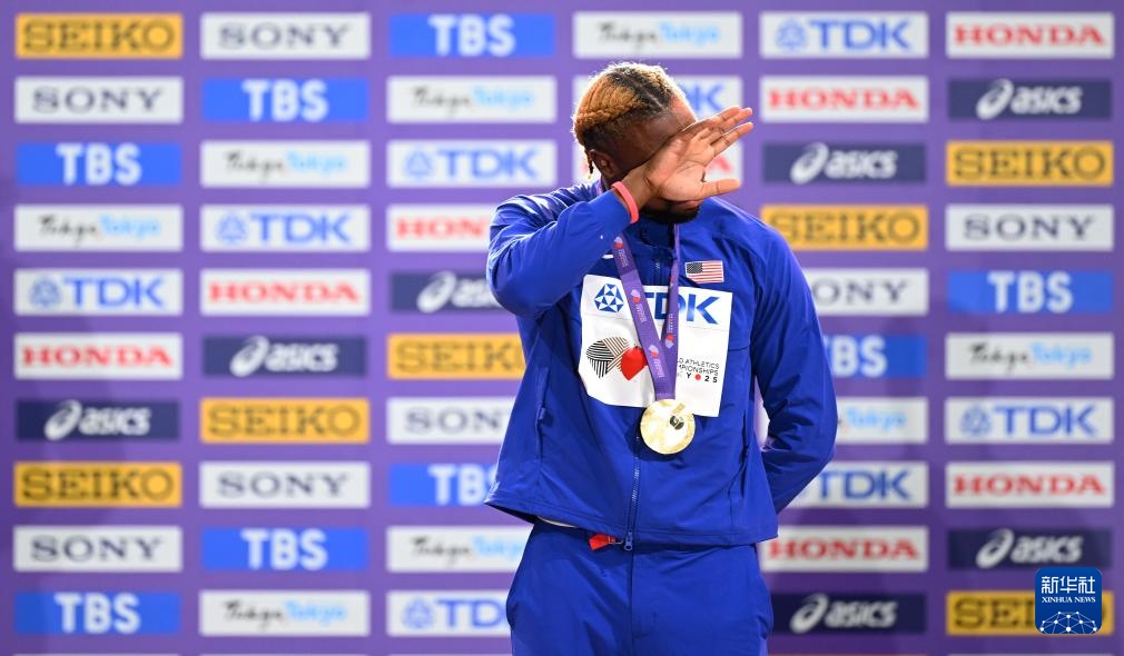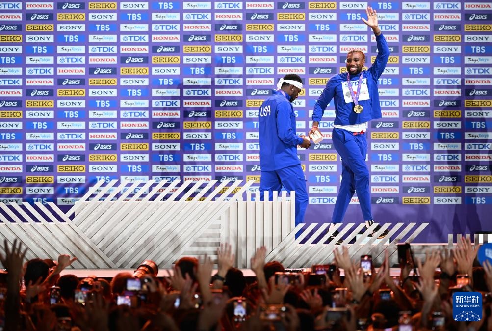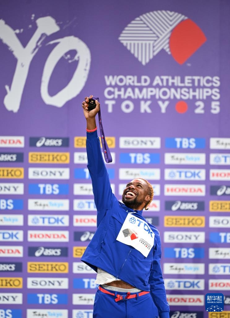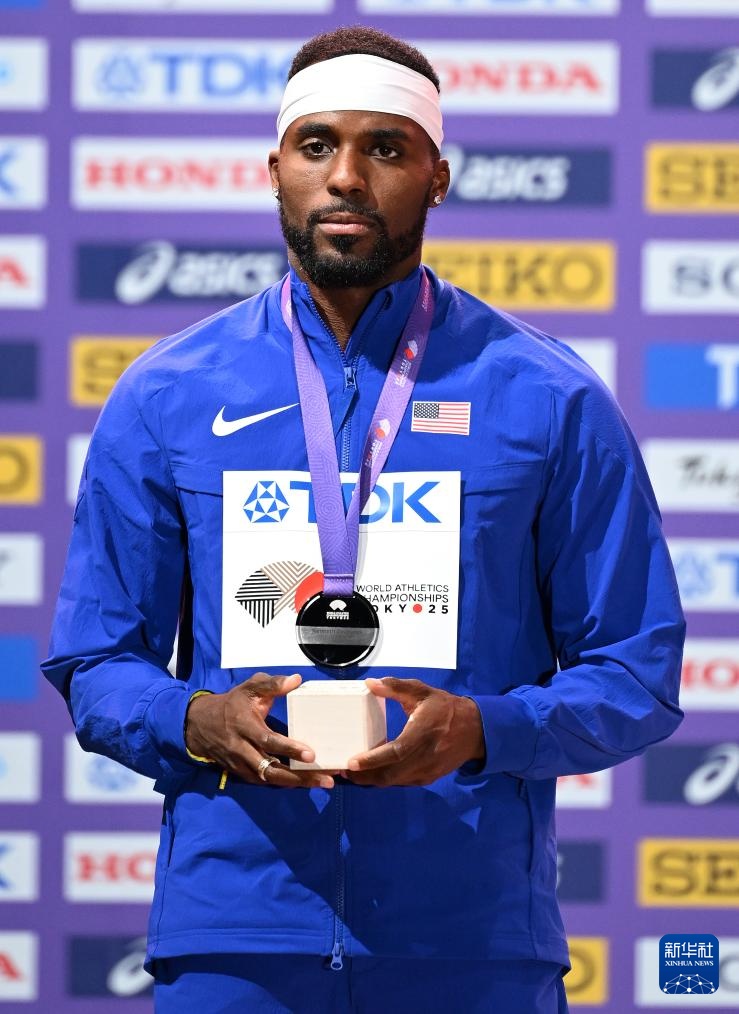 当日,2025年世界田径锦标赛男子200米颁奖仪式在日本东京举行。