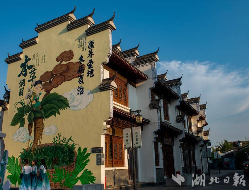 藏于李时珍文化旅游区的蕲艾小镇是一处明清风情秘境。青瓦黛墙的古建筑沿街巷错落排布,木质窗棂间隐约飘来蕲艾的清苦香气,将“慢生活”的底色晕染得愈发醇厚。