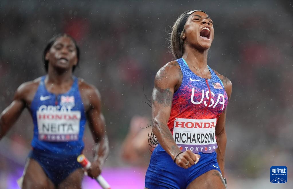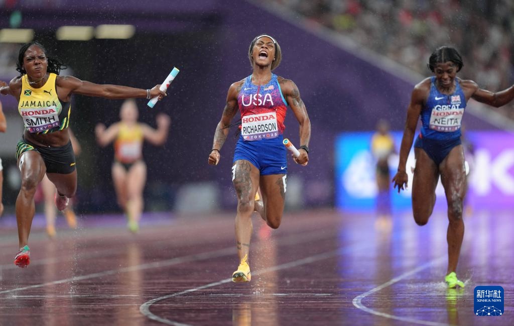 当日,2025年世界田径锦标赛女子4x100米接力决赛在日本东京举行。