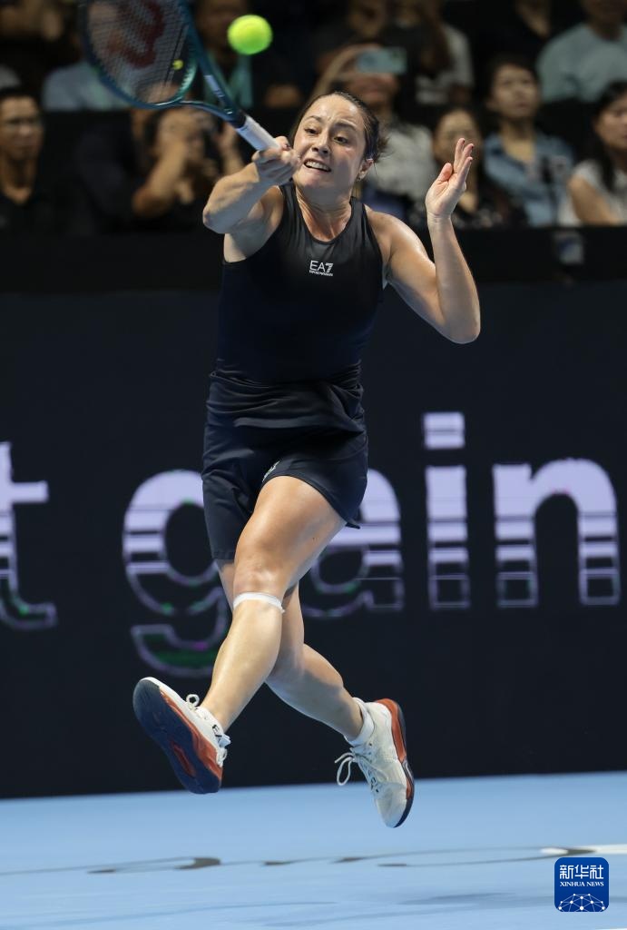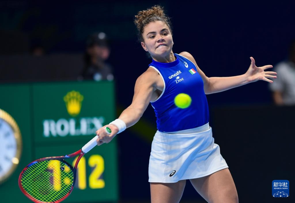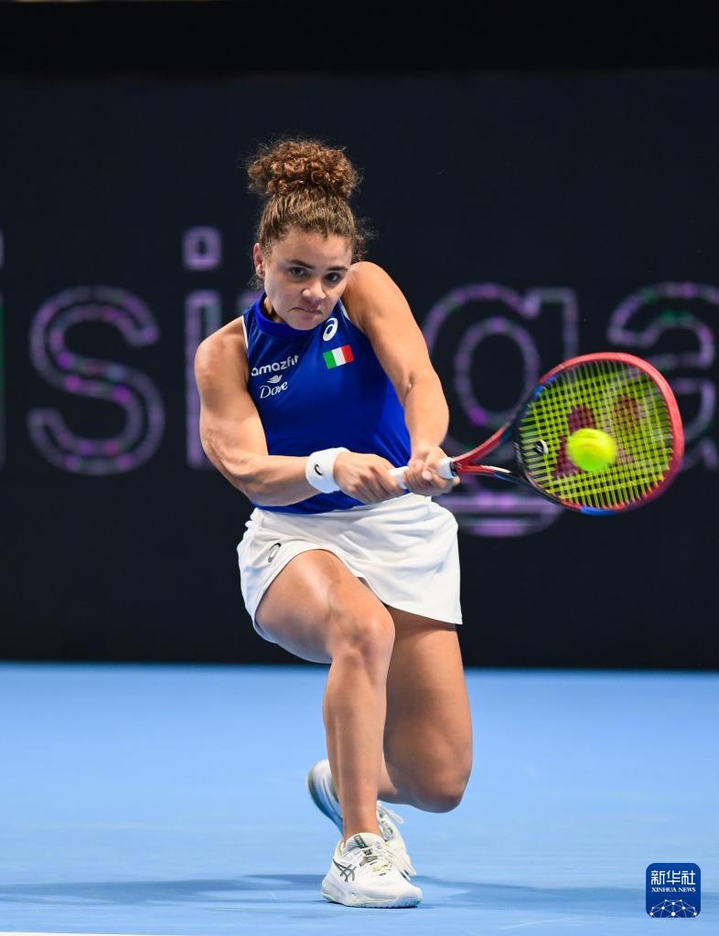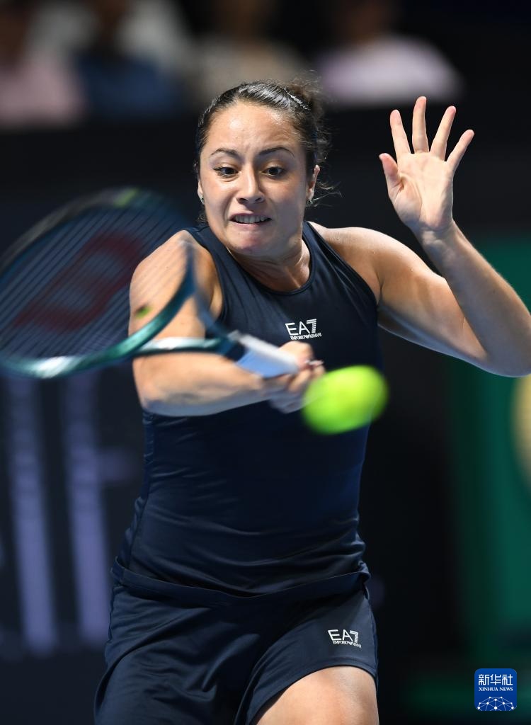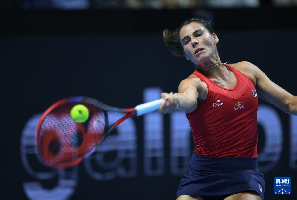 9月21日,意大利队选手保利尼在比赛中回球。她在单打比赛中2比0战胜美国选手佩古拉。