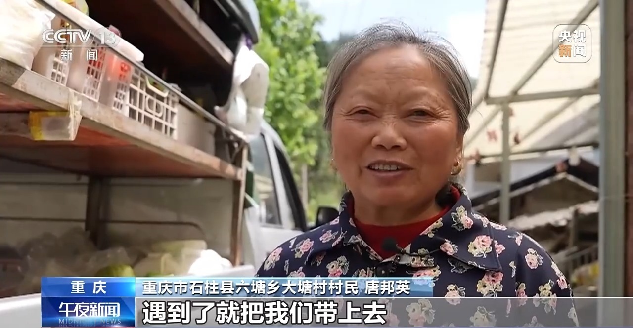 重庆市石柱县六塘乡大塘村村民 唐邦英:有时候脑壳疼,有时候牙齿也痛,又没有车子,到附近的医院走都要走一两个小时。他到这里来卖菜,遇到了就把我们带上去,都把我们带上去开药,他带我去几回了。