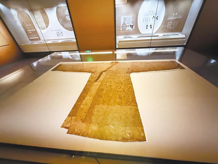 湖北日报讯 (记者何辉)2000多年前,楚人的单衣、被子长啥样?9月20日,“看见中国先秦丝绸宝库——荆州马山一号楚墓织绣品特展”在荆州博物馆开展。此次特展,以马山一号墓出土织绣文物为核心,共展出16件珍贵的织绣文物及3件复制品,其中一凤一龙相蟠纹绣紫红绢单衣、蟠龙飞凤纹绣浅黄绢面衾两件珍贵大型文物首次亮相。