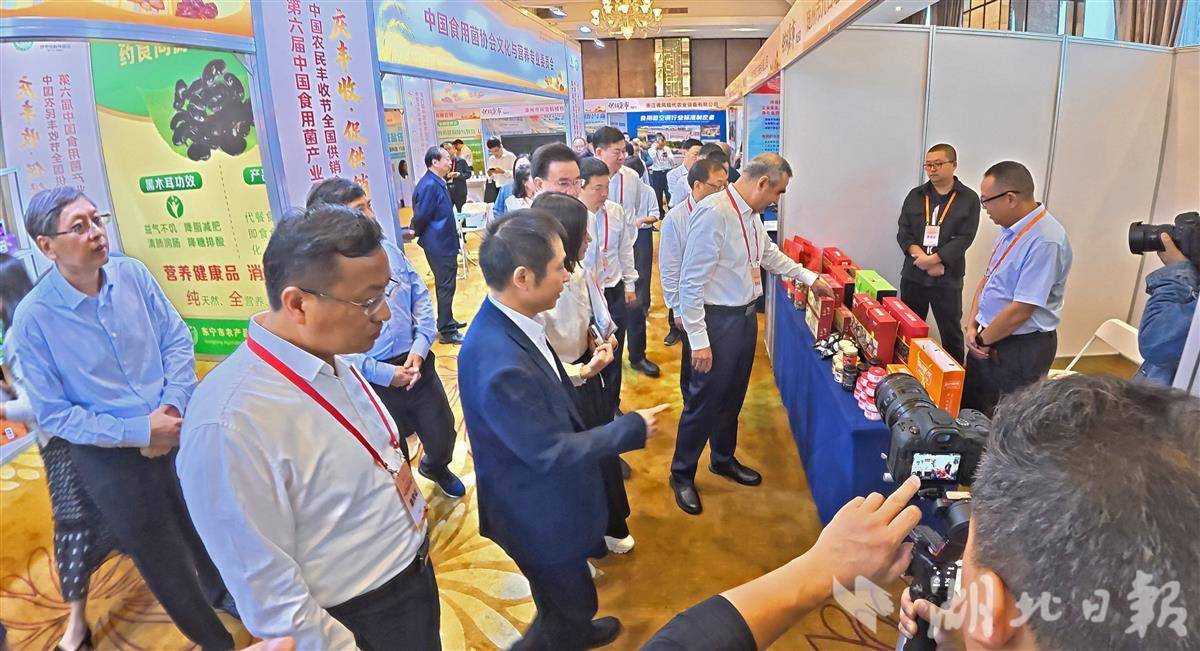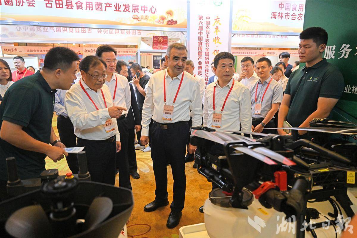 9月 23日,中国农民丰收节全国供销合作总社主题日活动之第六届中国食用菌产业博览会在宜昌开幕。目前,我国食用菌产业已发展成为年产量4332 万吨、年产值3929.8 亿元的大产业,在乡村振兴中发挥着重要作用。宜昌是湖北省域副中心城市,生态环境优越,农业资源富集,食用菌产业发展成效显著,年均食用菌袋料栽培9300 万袋、覆土栽培7200 亩,总产量达8.7 万吨。本届博览会以“庆丰收 促供销 谋发展”为主题,将持续至9 月24 日。期间,将开展巡展、行业报告会、“数智菌链”全国食用菌供应链创新暨新产品新技术发布会等多项活动。(湖北日报全媒记者 刘曙松 摄)