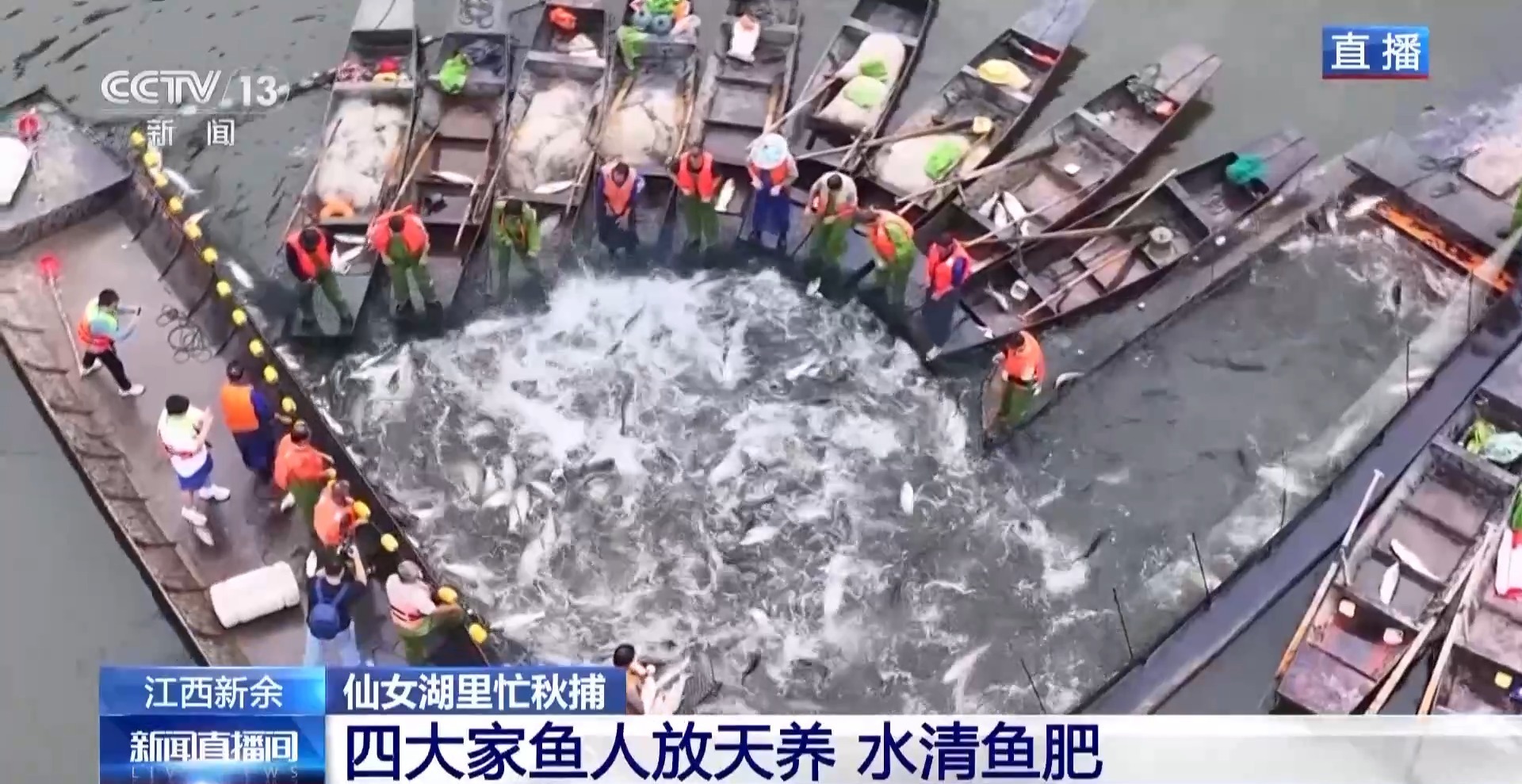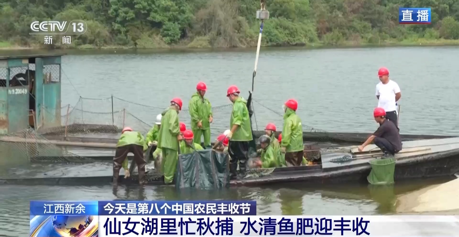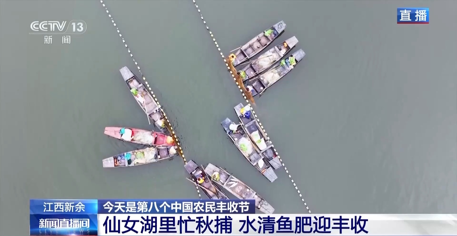 秋分时节,谷子金黄、辣椒红艳、葡萄晶莹、鱼蟹满塘,丰收的色彩惊艳着大地。在江西新余市仙女湖,热闹的秋捕正在展开,上万条鱼儿在湖面翻腾跳跃。今年的渔获怎么样?