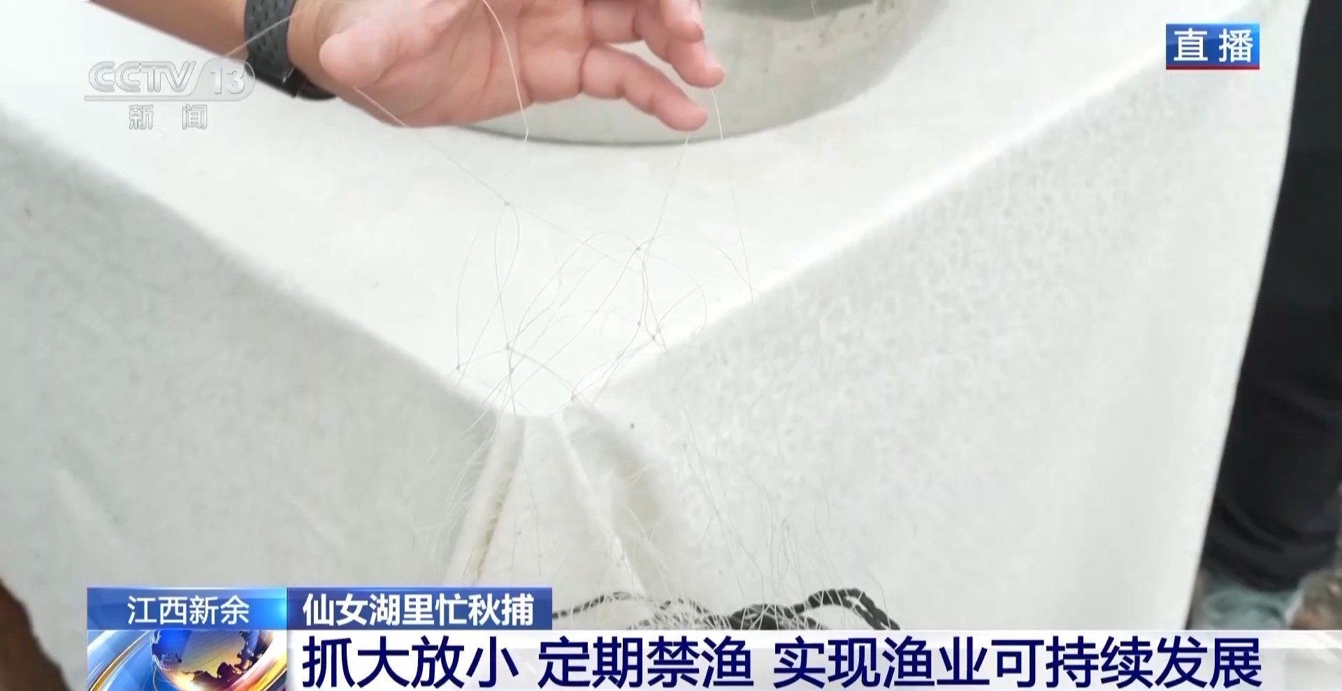 这是因为捕鱼使用的渔网网眼为20厘米,这样就能够做到捕大留小,小鱼就能够直接钻出网去,保证了可持续的生态捕捞。同时,每年3月和4月,仙女湖全水域禁止捕捞和垂钓,为的就是让鱼群休养生息,繁衍壮大,实现渔业可持续发展。