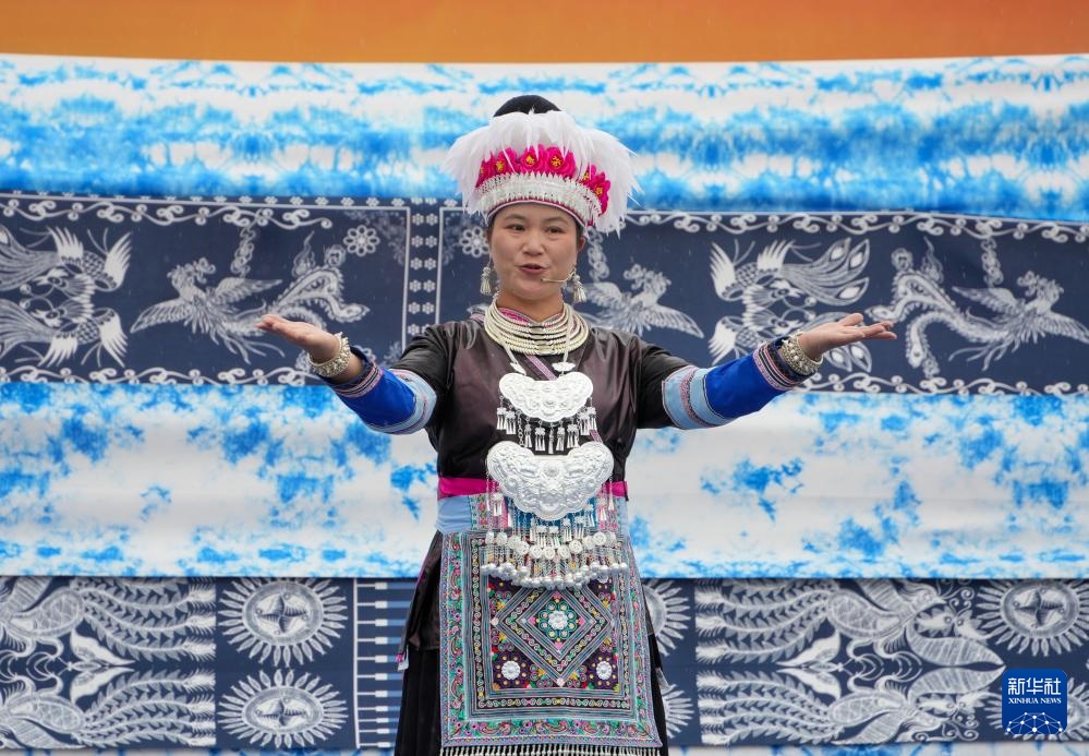 9月23日,在山东省招远市举办的中国农民丰收节全国主场活动现场,来自贵州省黎平县的农户陆勇妹与大家交流。