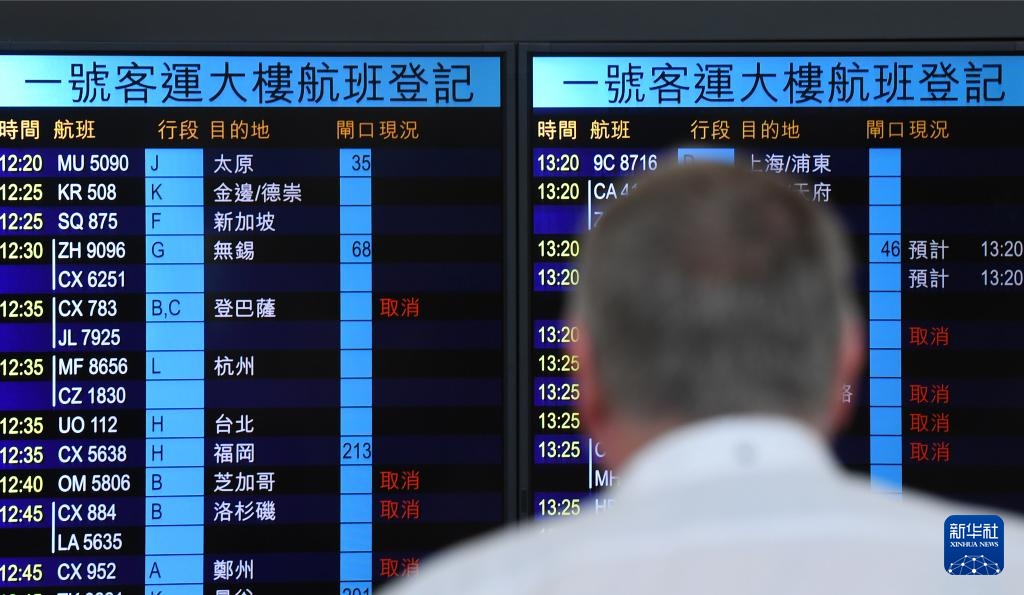 因台风“桦加沙”逼近,香港大批航班和高铁列车车次被取消。