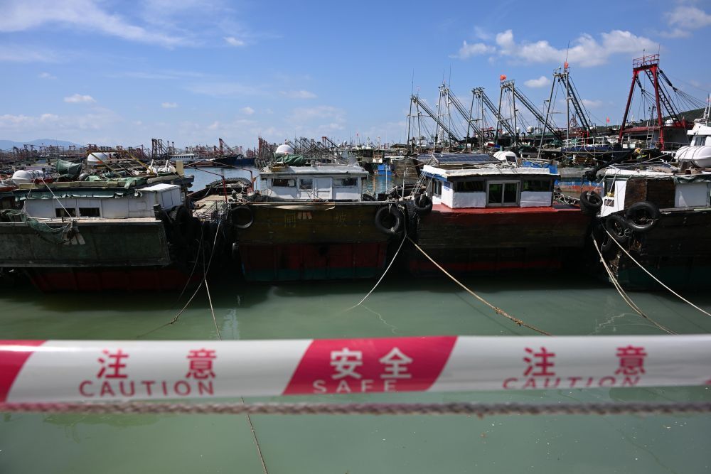 9月23日,在广东阳江市海陵岛闸坡国家中心渔港,登岸出入口已绑上明显标志。新华社记者 邓华 摄