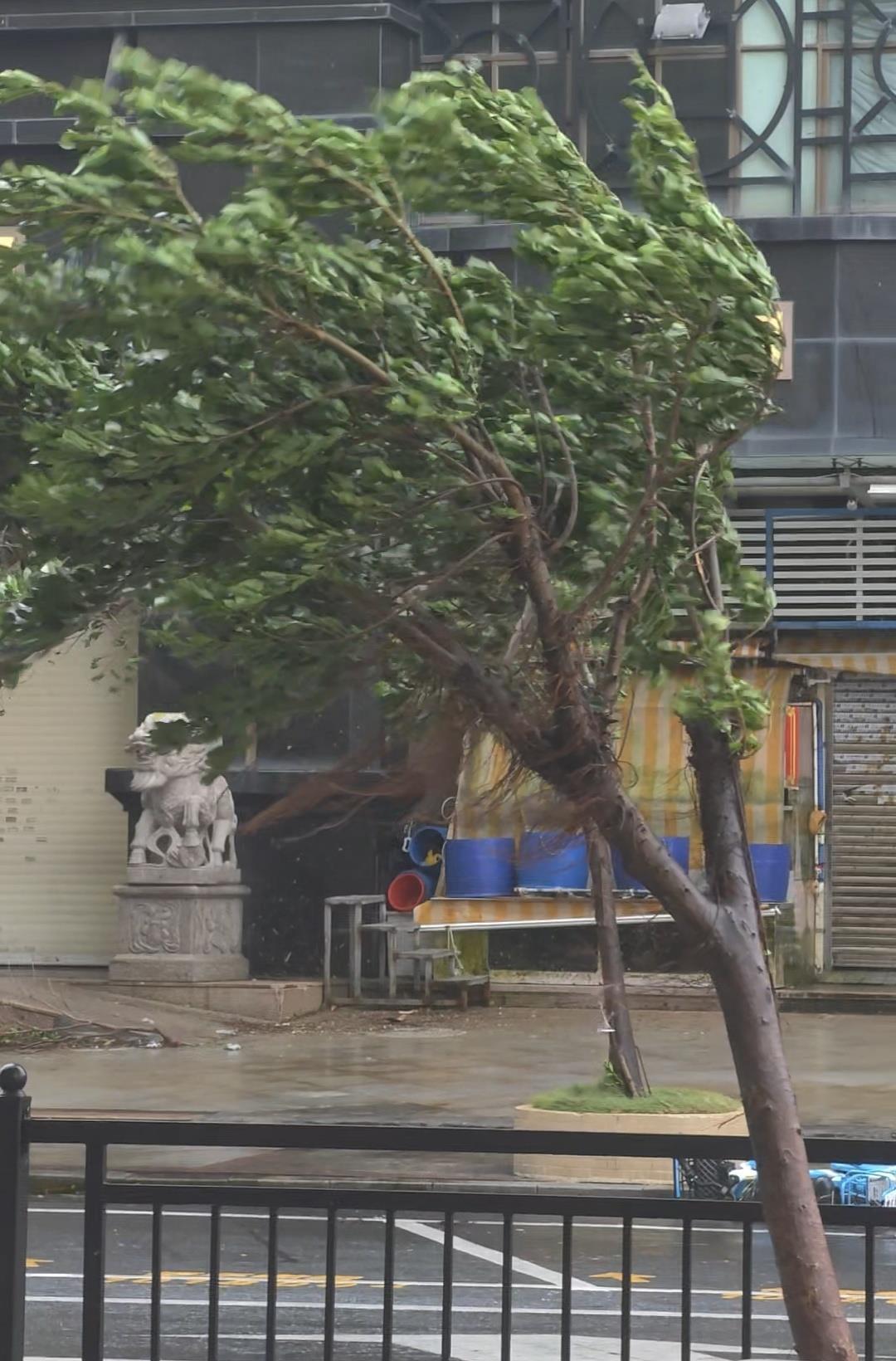 24日上午,极目新闻记者在珠海香洲区情侣路附近看到,路边有直径近20厘米粗细的树木已出现倒伏情况,路上随处可见被强风吹落的断枝,商户此前在门外侧粘贴的胶带已被大风吹掉,人行走在路上完全无法正常行走,雨水打在脸上感到阵阵疼痛。