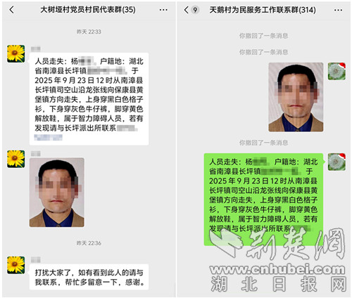 9月23日12时许,保康县公安局黄堡派出所接到南漳县公安局长坪派出所协查通报:南漳县长坪籍智障男子杨某,于当日上午沿龙张线往保康县方向出走,其家人寻人无果担心出事,希望协助查找。
