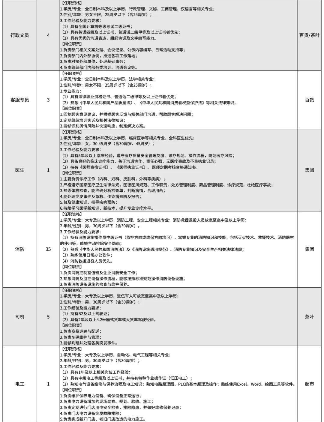 与此前新乡胖东来新店招聘不同的是,此次招聘有一个岗位的年龄放宽至45周岁,即医生:主要负责诊疗工作,能处理突发事件及急救、传染病预防及报告等工作。该岗位仅招1人;要求女性,30-45周岁,具有5年以上的临床经验等。