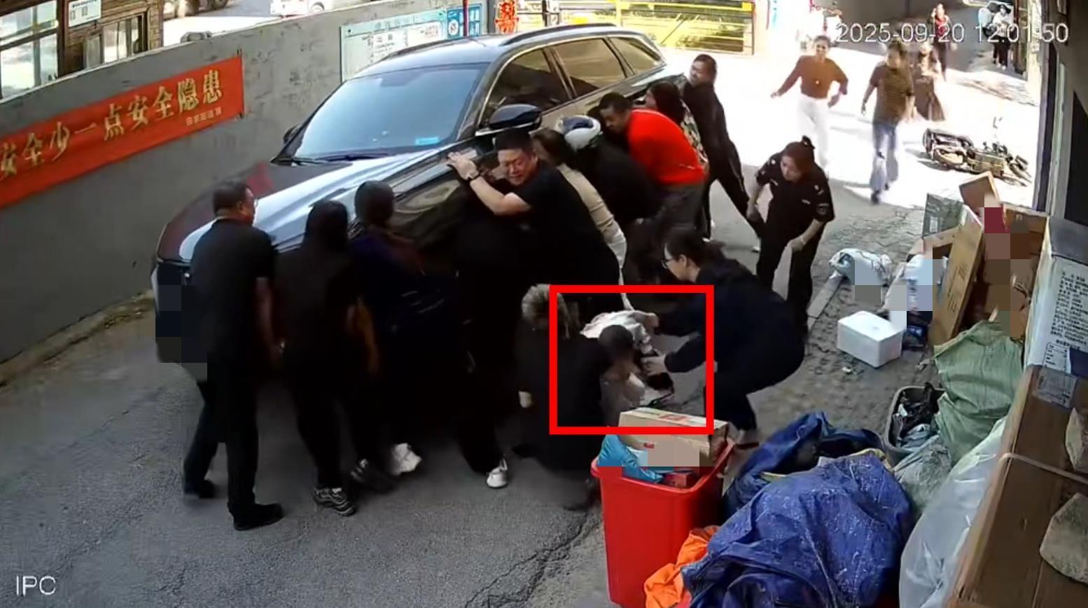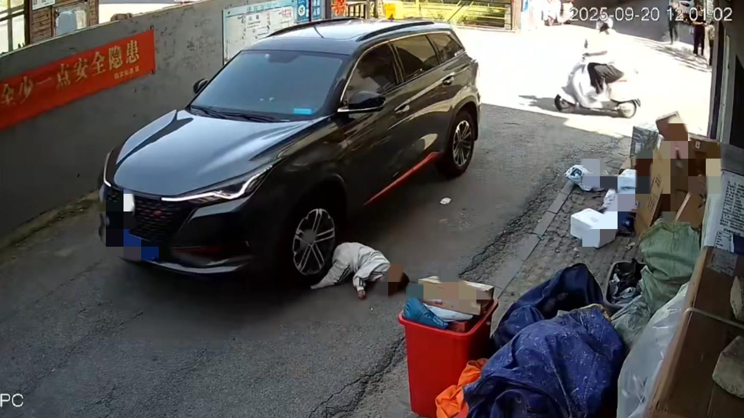 根据监控视频,事发时间为9月20日12时许。视频画面显示,一名男童蹲在较窄的道路上玩耍,被一辆SUV汽车撞倒,腿部被轮胎碾轧。一旁商铺有人冲出来拍打车窗后,迅速查看孩子的情况。画面中,十几名路人瞬间汇聚到肇事车辆旁,约50秒后,众人抬起汽车,将孩子救出。女性司机也下车参与了救人。