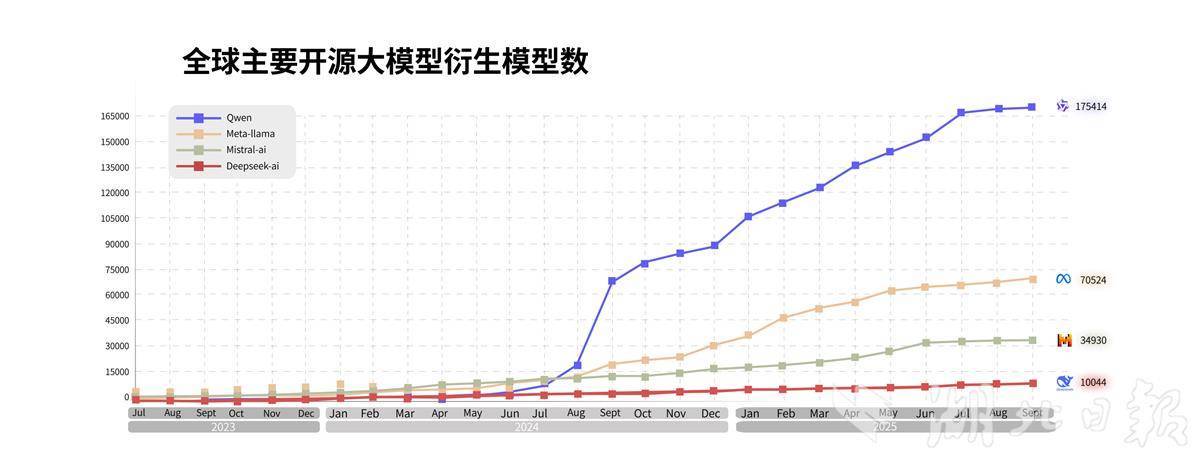 自2023年开源第一款模型以来,通义大模型在全球下载量突破6亿次,衍生模型突破17万个,已发展成为全球第一开源模型。除了惠及AI开发者,通义衍生模型的开发机构还覆盖海内外国知名企业,包括苹果、英伟达、微软、DeepSeek和字节跳动等。截至目前,通义大模型已服务超100万客户。沙利文报告显示,2025年上半年,在中国企业级大模型调用市场中,通义位列第一。