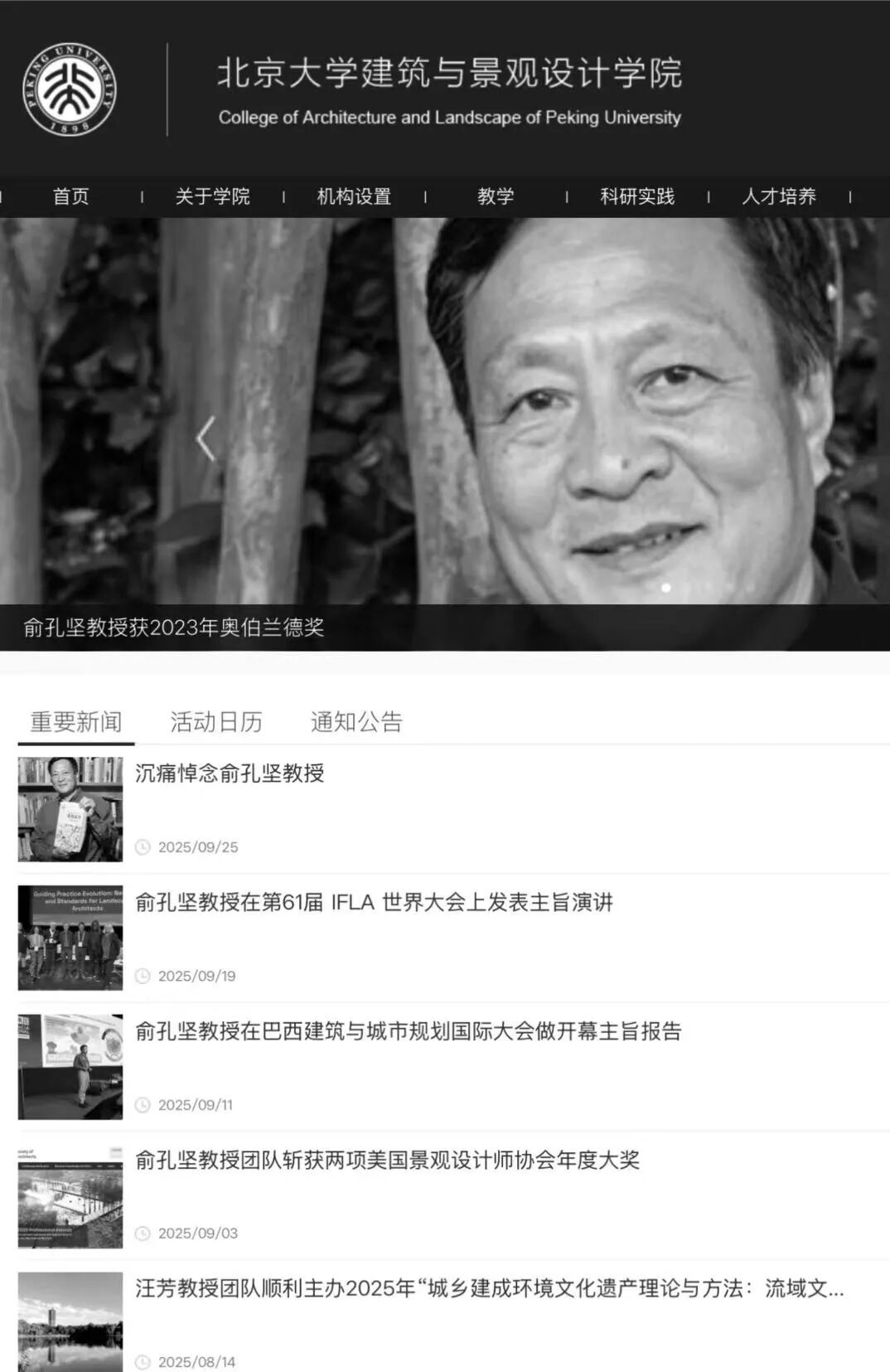9月25日,记者注意到,北京大学建筑与景观设计学院官方网站已变为黑白页面。