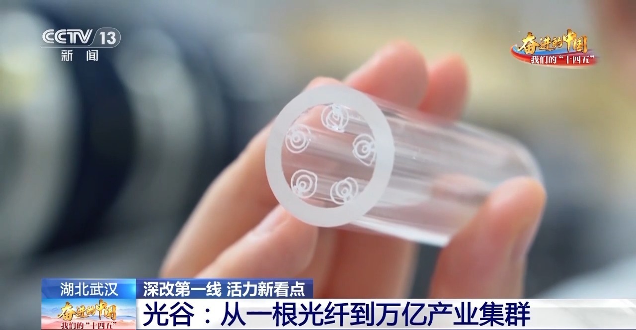 在一家光纤的研制企业,总台记者佘利霞看到了空芯光纤,通过放大的模型可以看到,它是一个中空的结构,这样的结构让光信号在其中传输的时候,就像坐上了一台磁悬浮高铁,助力AI时代的大数据跑得更快。