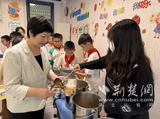 土豆丝、香干回锅牛肉、番茄鸡蛋,3个下饭菜搭配喷香米饭,人大代表和孩子们一起吃得津津有味。“小朋友,今天的饭菜喜欢吃吗?”“小帅哥,你这1米69的个头,饭菜的分量够吃吗?”在五年级教室,区人大代表刘革珍边吃边与学生交流,孩子们抢着回答“好吃”“够吃”。