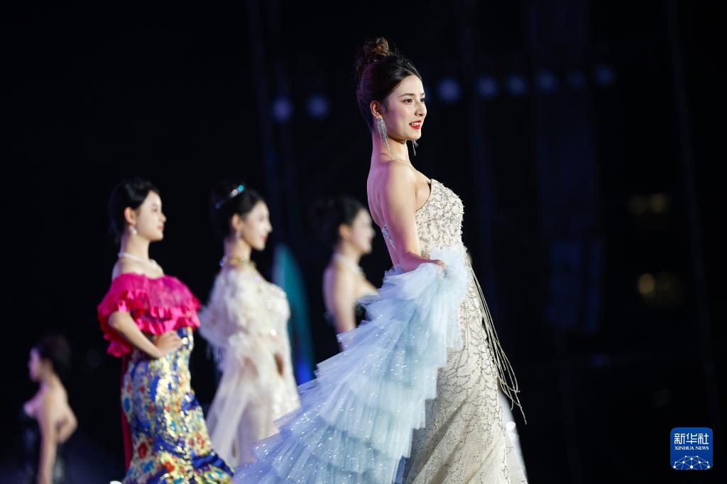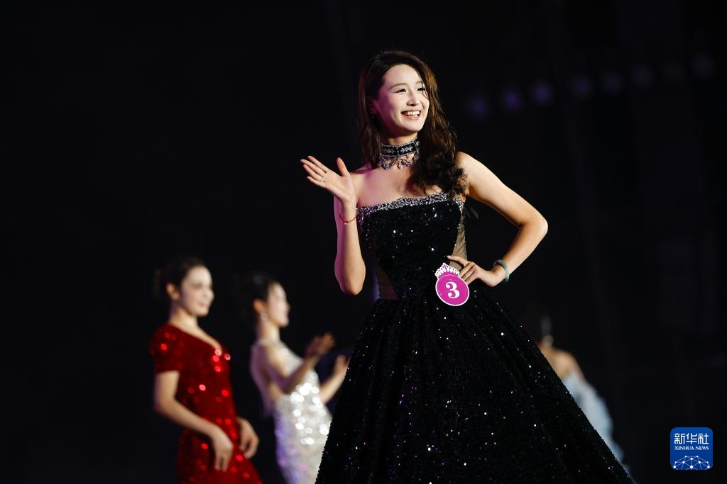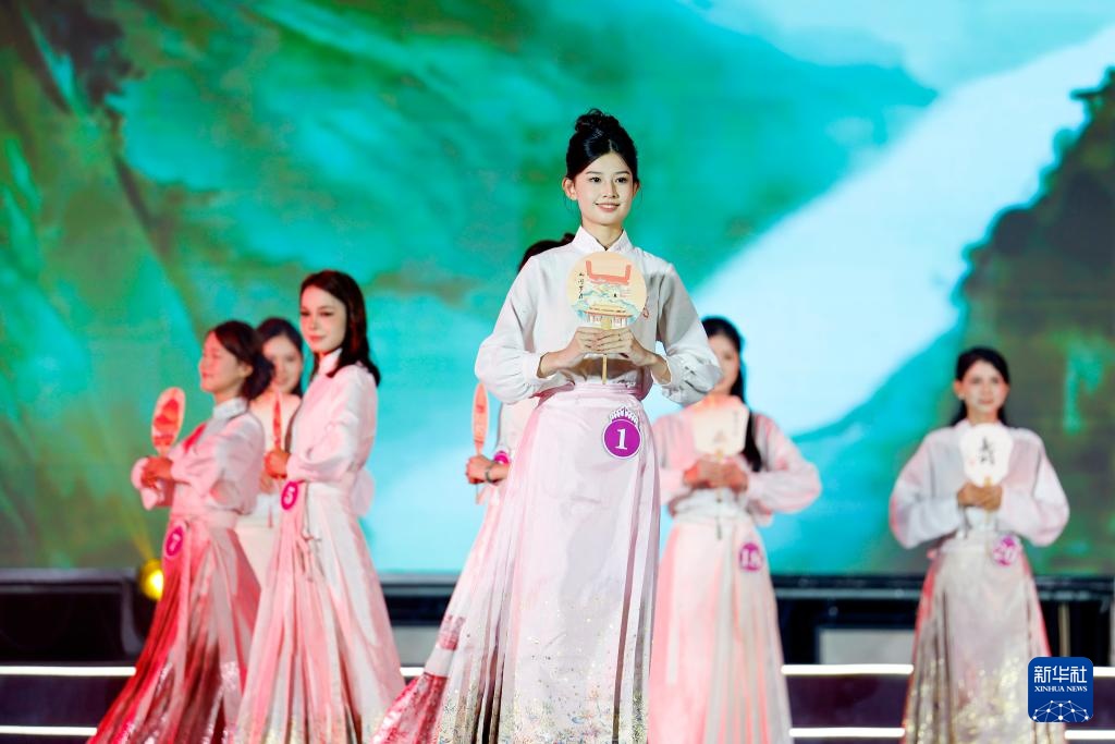 9月27日,选手热孜亚·艾力(右一)在2025世界旅游小姐中国年度冠军总决赛现场。