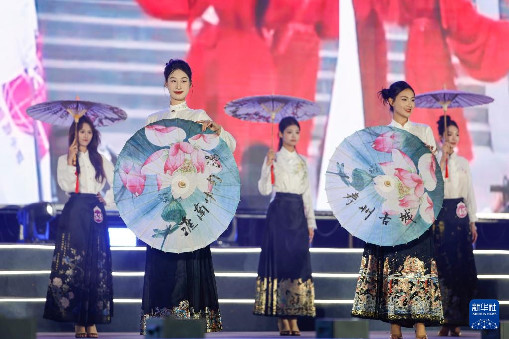 9月27日,选手们在2025世界旅游小姐中国年度冠军总决赛现场。(无人机照片)