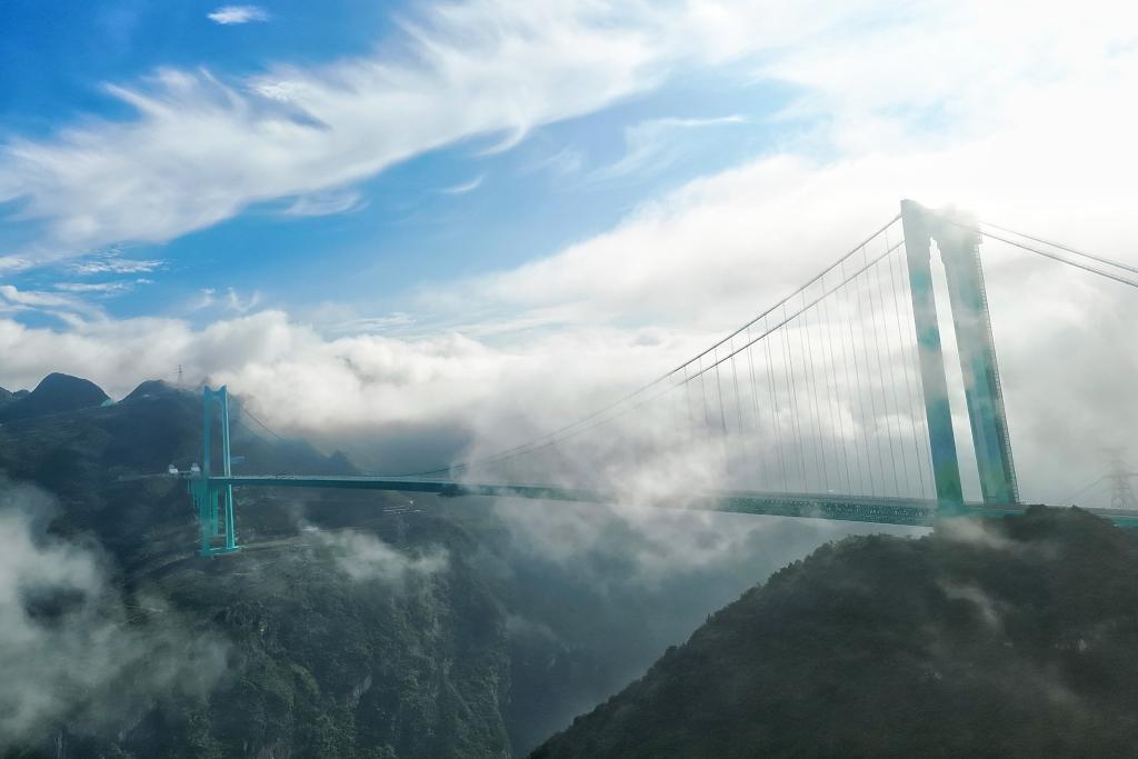 贵州省交通运输厅厅长张胤说,大桥设计为双向4车道的高速公路,建设过程中创新采用智能缆吊系统、2000兆帕级高强钢丝等先进技术,获得授权专利21项,“这是一座展示中国创新能力的‘标杆桥’”。