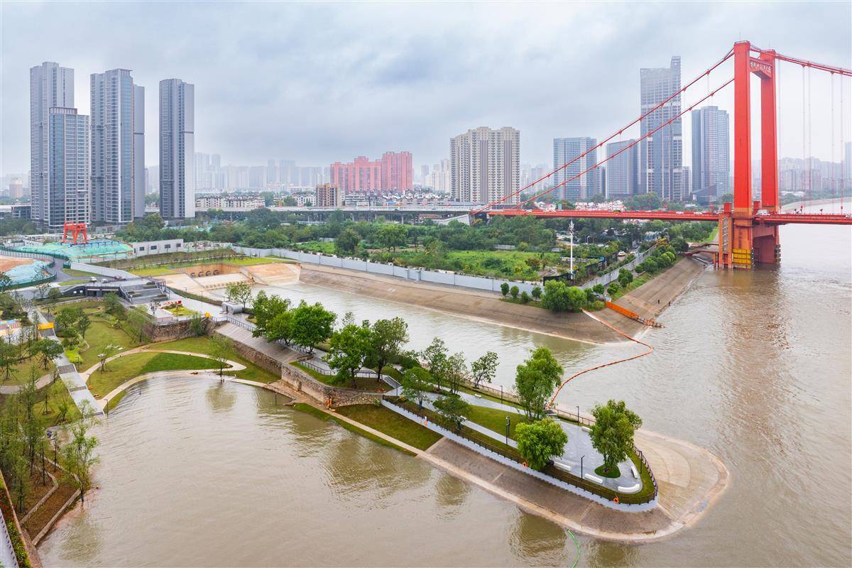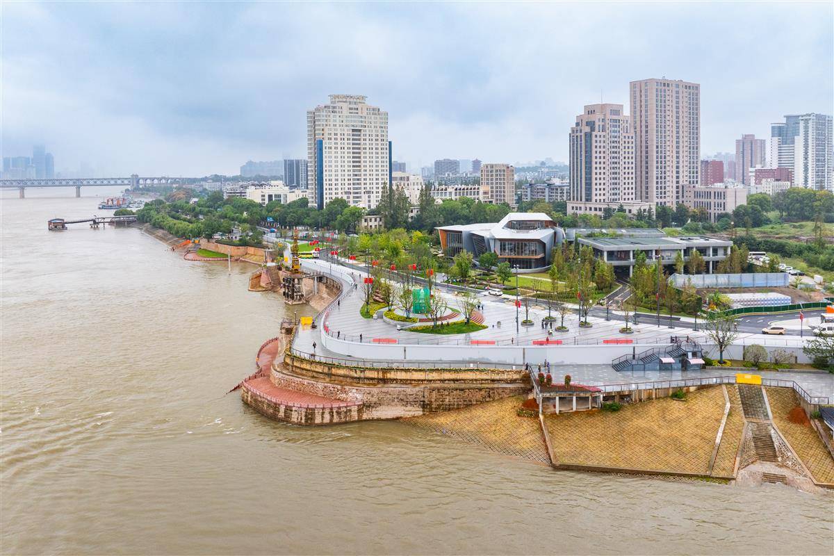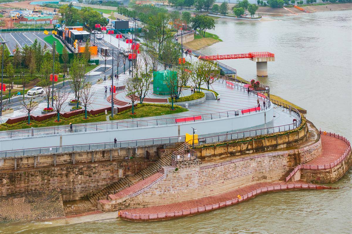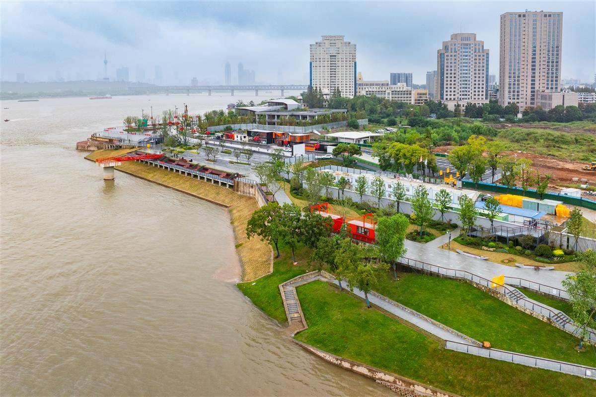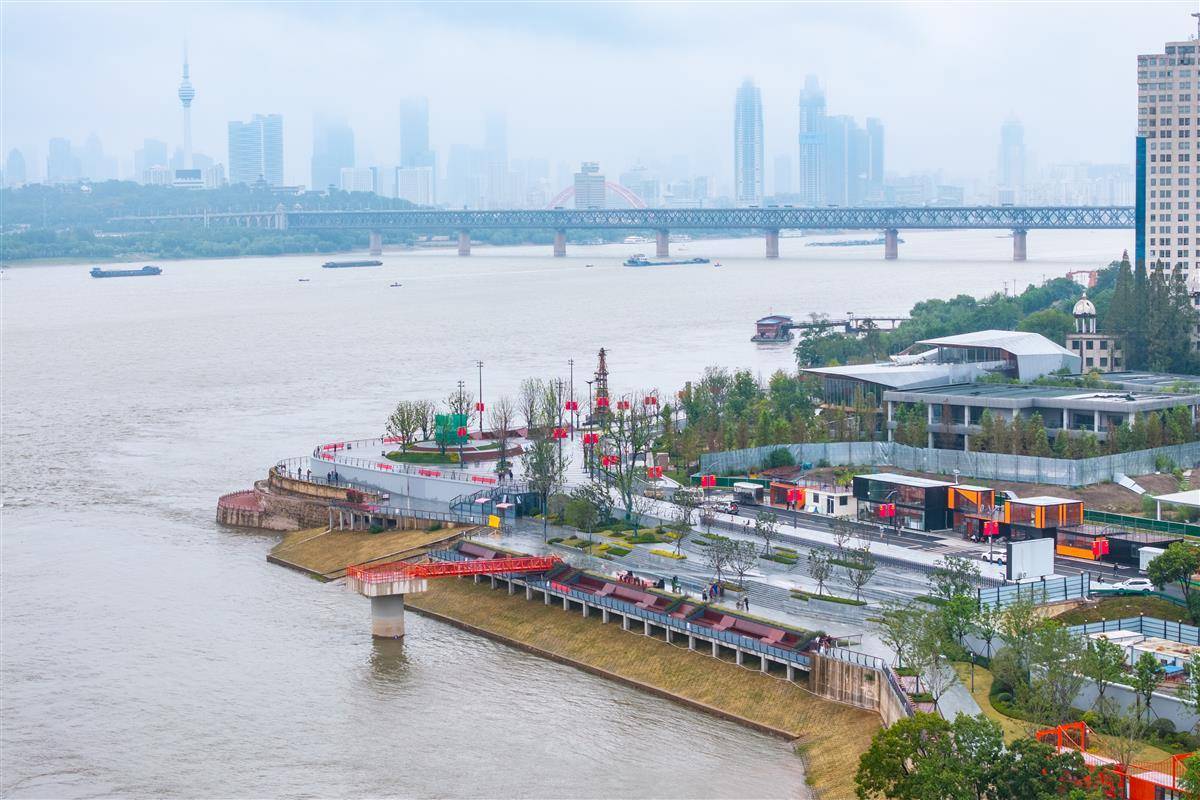 9月28日,“武昌湾”江滩开放试运营,宽阔的观江平台和极具特色的红色栈道、景观相框、历史塔吊及景观绿化将成为市民游客娱乐休闲的好去处。据介绍,作为百里长江生态廊道重点项目,工程对原武船厂专防堤段防洪墙原址重建,打通碧道断点,串联沿江岸线,重建1046米防洪墙,新增绿化3.1万㎡,贯通武汉百里长江生态廊道的“最后一公里”,连接武昌古城与滨江商务区,提升防洪能力与城市品质。(湖北日报全媒记者 倪娜 摄)