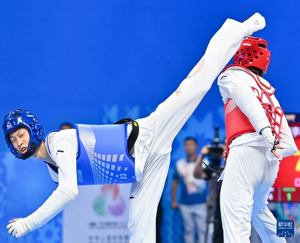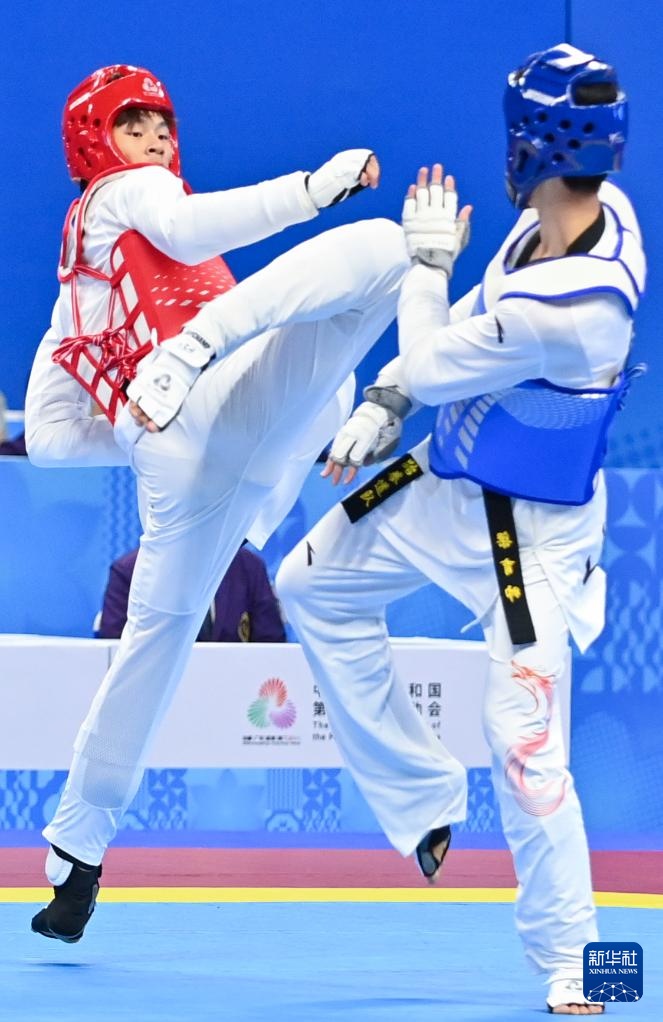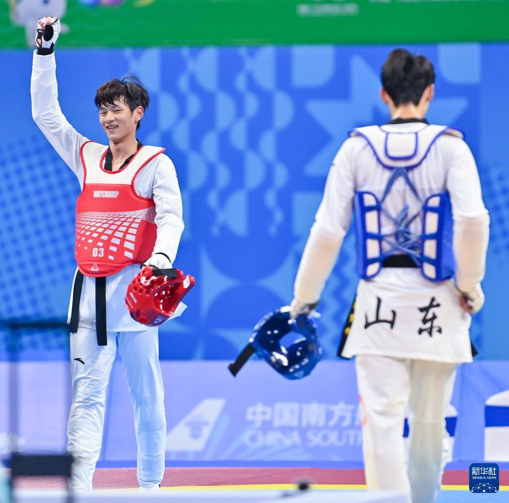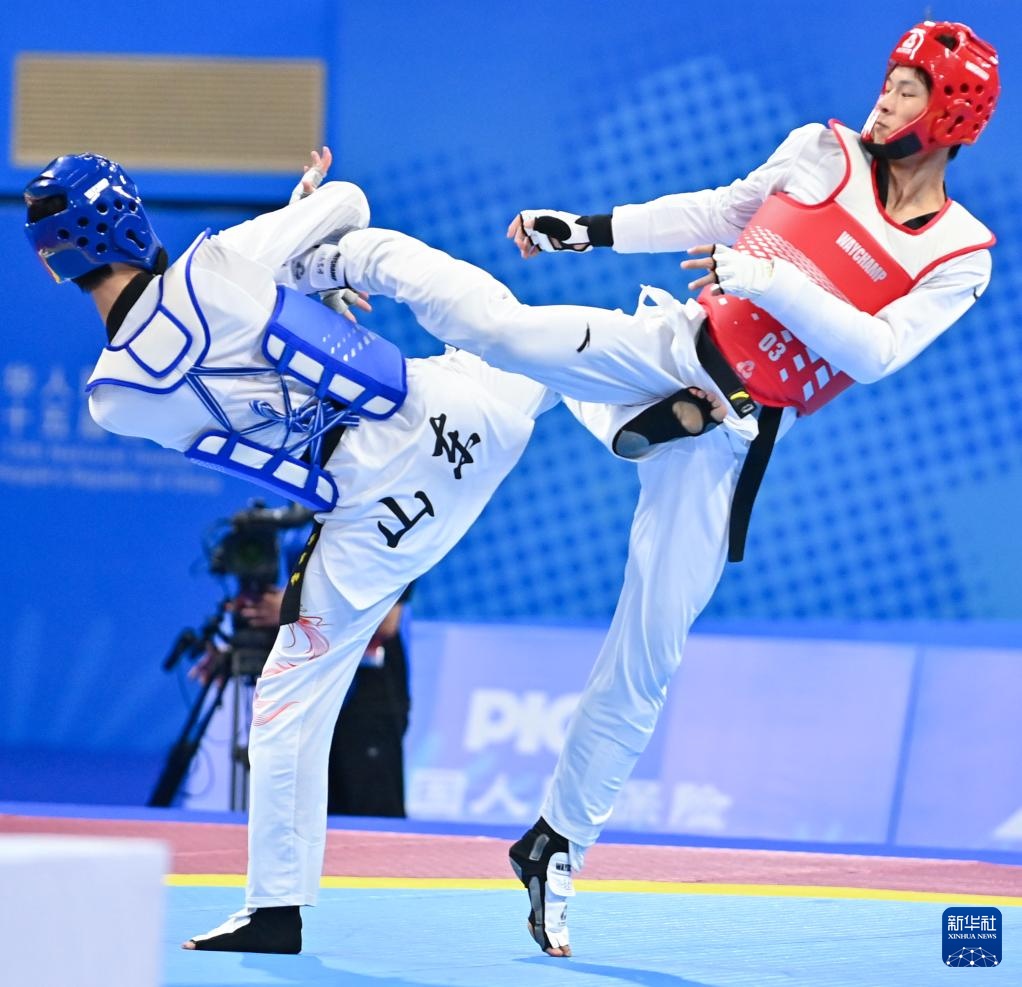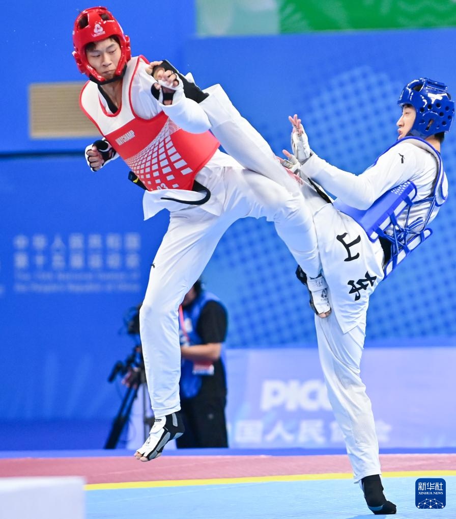 当日,在广东惠州举行的第十五届全运会跆拳道项目男子68公斤级决赛中,安徽队选手刁李星君2比1战胜山东队选手梁育帅,获得冠军。