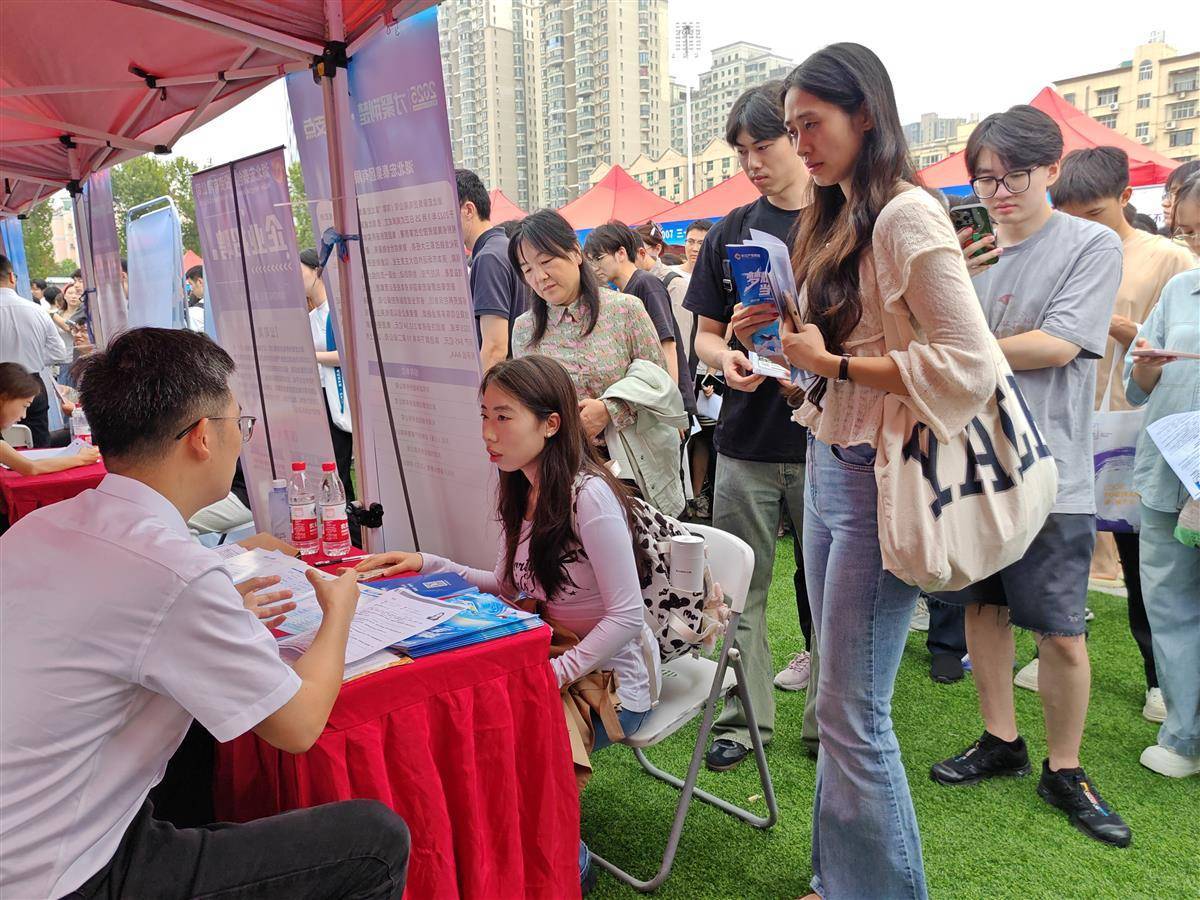 毕业于英国伦敦大学学院金融相关专业的刘潘蕊,今早特地从黄石赶来,她说:“今天和很多企业沟通,找到了匹配岗位,还收到一两个意向单位,后面会去更多展位看看。”