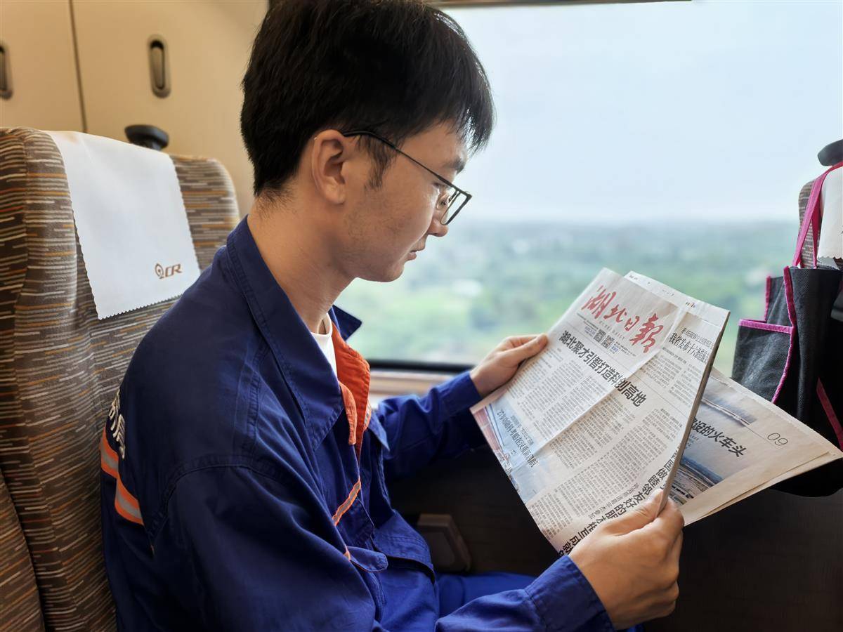 建设者乘车体验,阅读湖北日报。