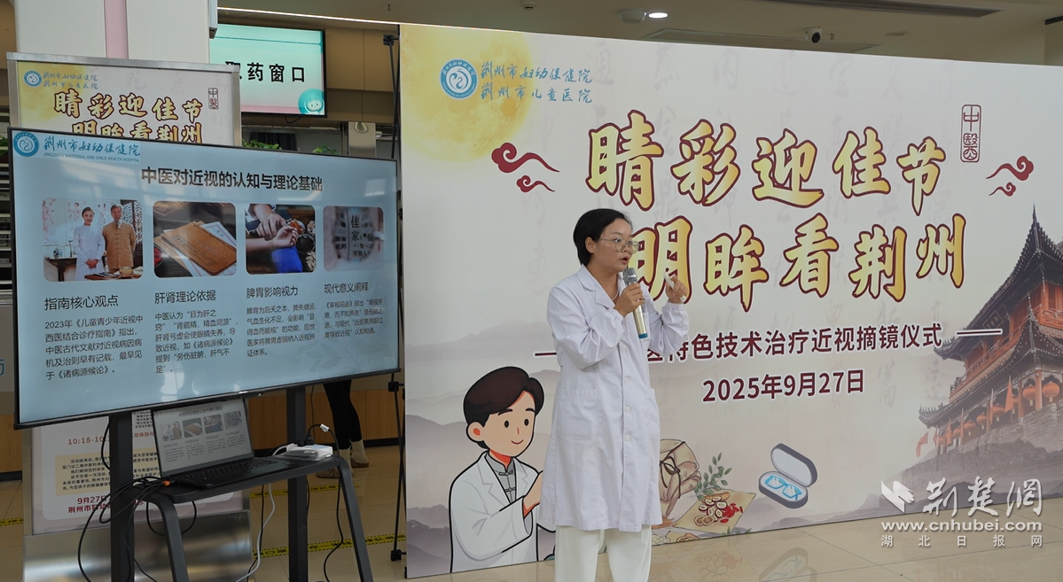 荆楚网(湖北日报网)讯(记者 吴祺芸 通讯员 谢宇)中秋国庆双节将至,9月27日上午,荆州市妇幼保健院门诊楼一楼大厅暖意融融,“睛彩迎佳节・明眸看荆州” 中医特色技术治疗近视摘镜仪式正在进行。众多家长与孩子齐聚一堂,共同见证中医技术在儿童近视防控领域的显著成效。