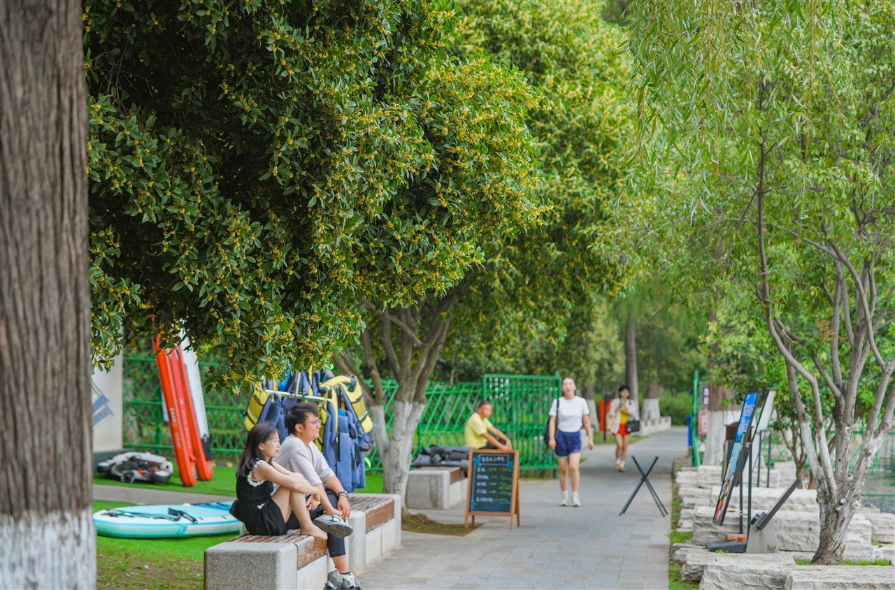 据了解,随着国庆、中秋双节临近,东湖听涛泳场的桂花花期将持续至10月中旬,为市民游客的假期出游增添一处“闻香赏景”的好去处。