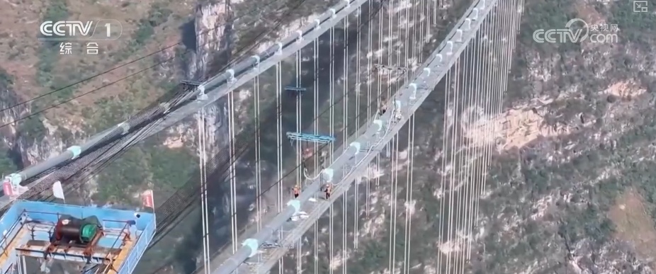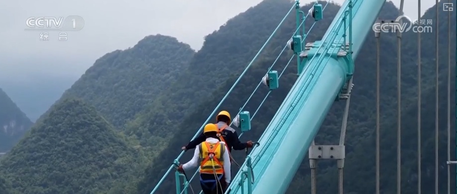 第二个突破是给大桥的钢筋铁骨赋予“智慧大脑”。花江峡谷大桥作为特大型桥梁,设计基准期为100年。使用期间,施工人员需要不间断地对主缆进行检查。