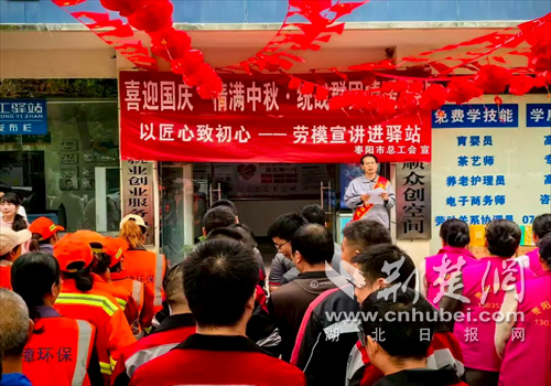 荆楚网(湖北日报网)讯(通讯员 张晓娥)中秋月圆意,家国总关情。9月28日,枣阳市三三三人力资源工会驿站暖意融融,市委统战部、市总工会、团市委等七大统战群团部门携手开展“双节送暖”活动,为新就业形态劳动者、环卫工人等百余位劳动者送上节日问候与贴心服务,在弘扬传统文化的浓厚氛围中,绘就关爱劳动者的“同心圆”。